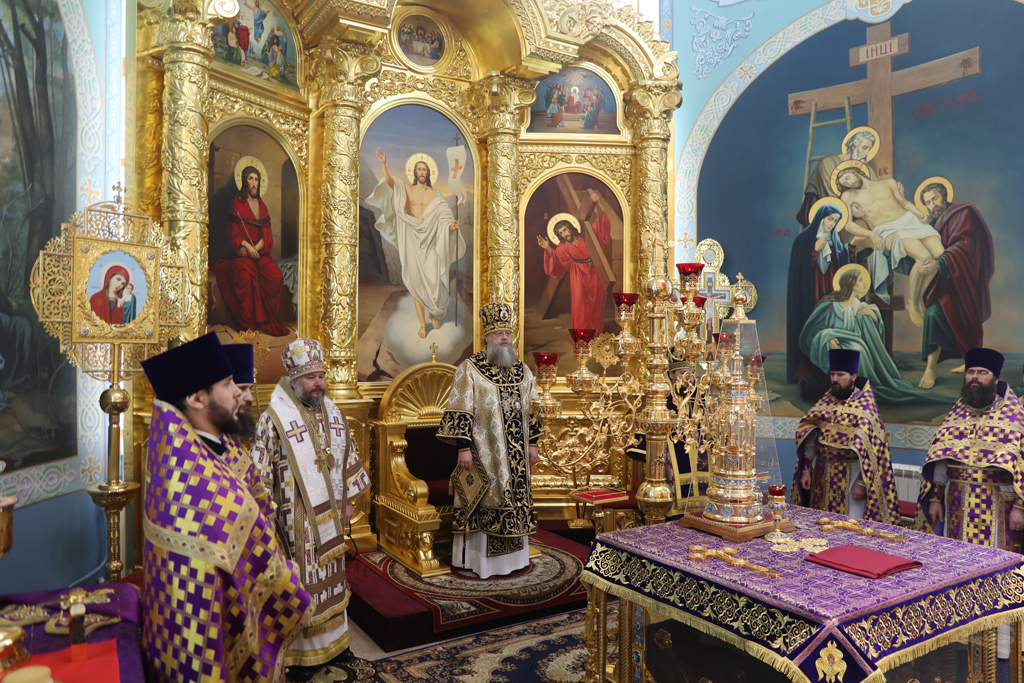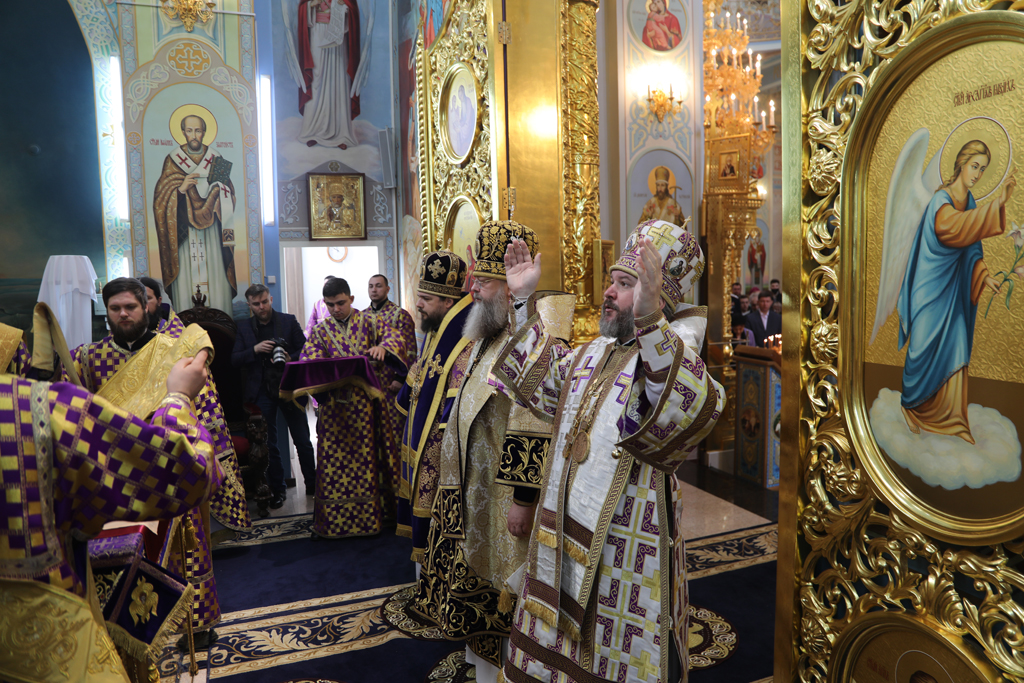 3 апреля 2022 года, в 4-ю Неделю Великого поста – преподобного Иоанна Лествичника, митрополит Ростовский и Новочеркасский Меркурий, епископ Волгодонский и Сальский Антоний и епископ Шахтинский и Миллеровский Симон совершили Божественную литургию в соборе Рождества Христова города Волгодонска.