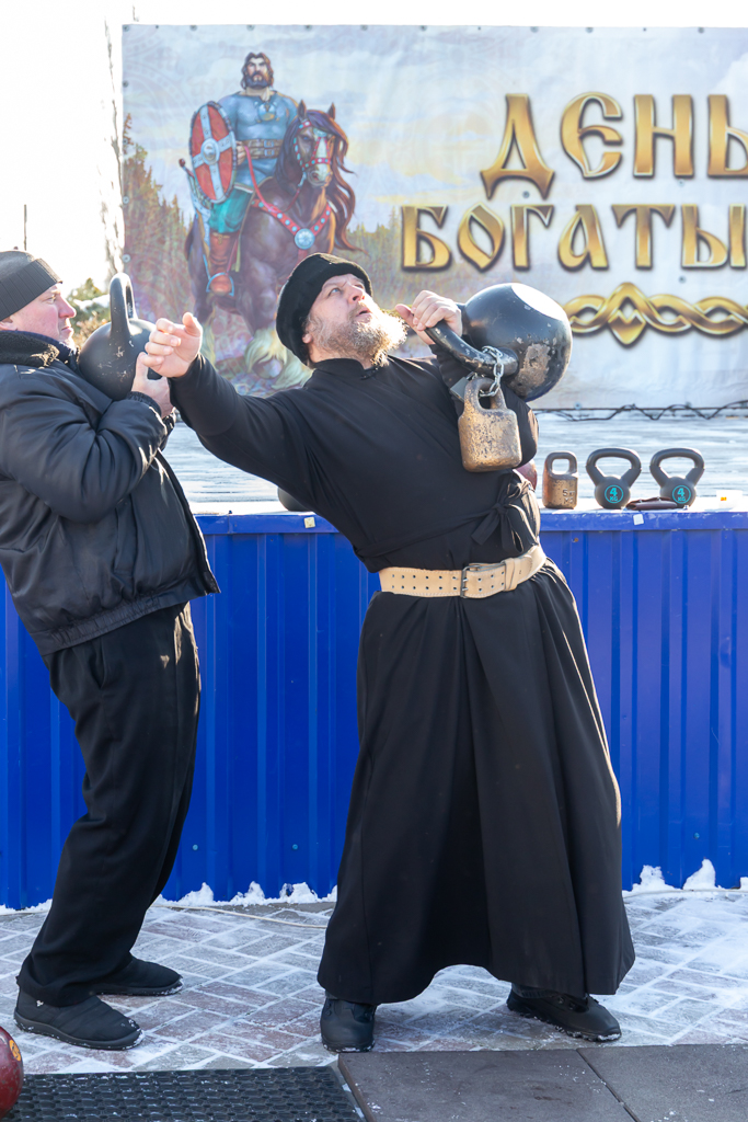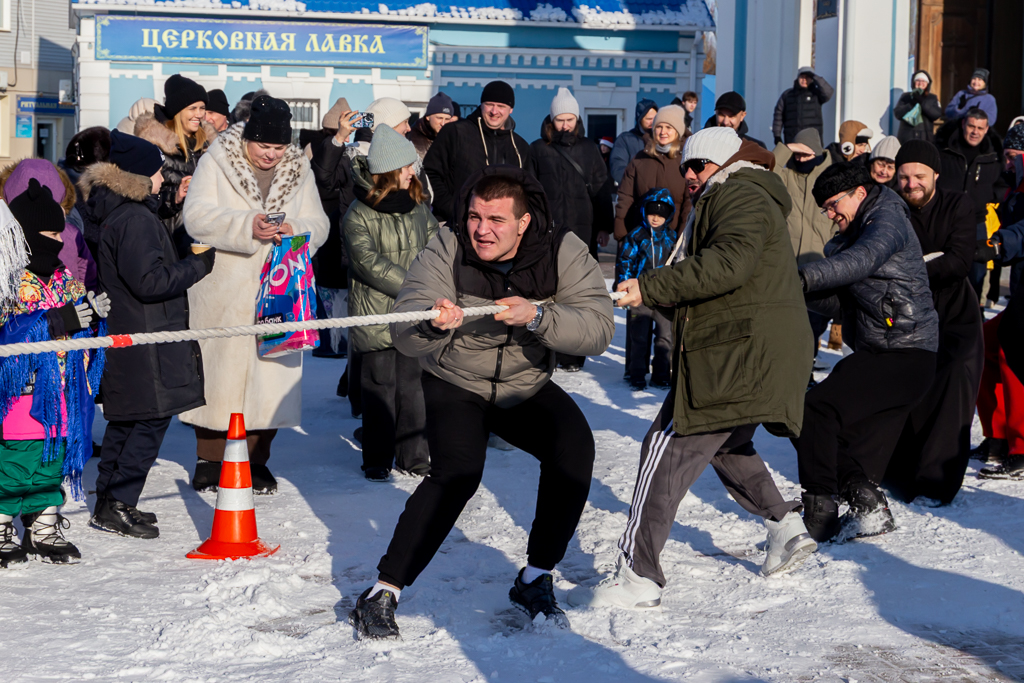 Активные участники на деле показали, что не перевелись на Руси богатыри. Священнослужители Шахтинской епархии продемонстрировали силу, взяв гирю весом 75 килограмм. Испытали свои физические навыки и многие горожане, для желающих было устроено соревнование в нескольких возрастных категориях. Гости праздника проявляли командный дух в перетягивании каната. Желающие могли проверить свою силу на эспандерах и в разрывании отрывных календарей, что требует особой подготовки.