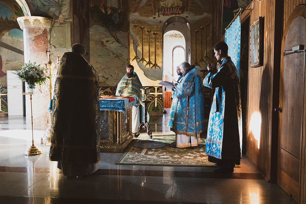 Его Преосвященству сослужили настоятель Покровского кафедрального собора г. Шахты иерей Александр Теличкин, клирики собора иерей Леонид Зацепилин, иеродиакон Флавиан (Васильев), диакон Вадим Ефимов.