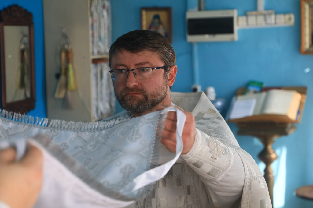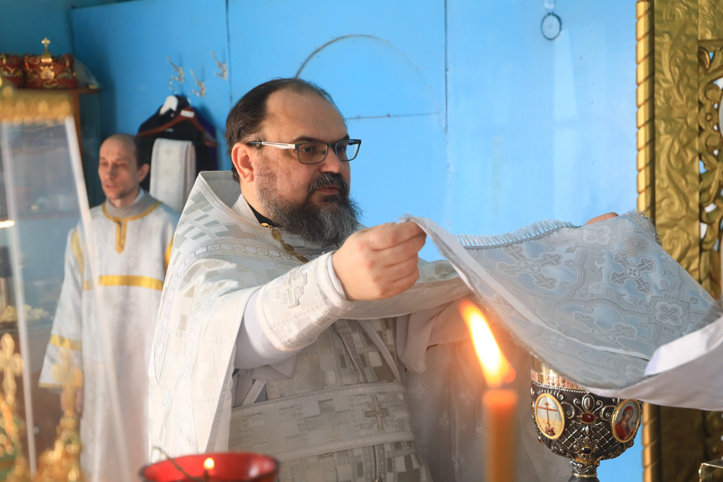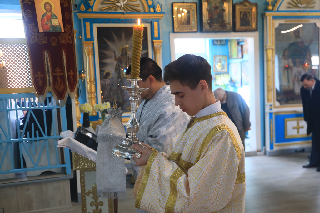 Его Преосвященству сослужили настоятель храма протоиерей Василий Хадыкин, клирик храма Вознесения Господня города Шахты иерей Виталий Крендясов, диакон Трофим Осяк и диакон Андрей Трошин.