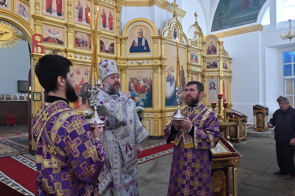 14 апреля 2024 года, В Неделю 4-ю Великого поста, именуемую в честь преподобного Иоанна Лествичника, епископ Шахтинский и Миллеровский Симон совершил Божественную литургию в храме Успения Пресвятой Богородицы станицы Калитвенской.