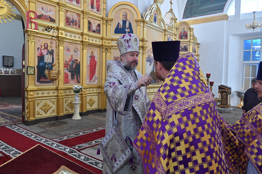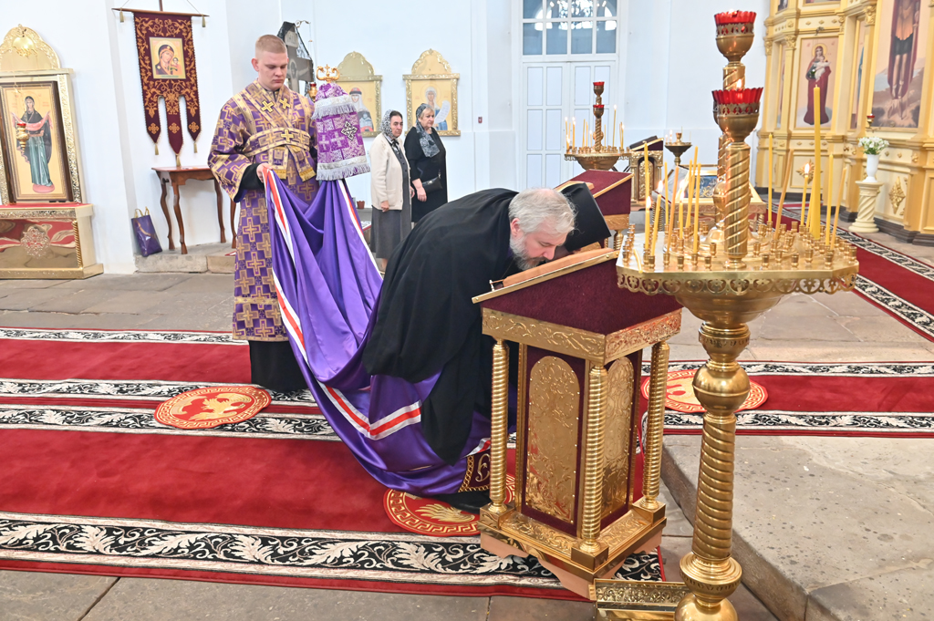 Преосвященнейший епископ Симон преподал пришедшим на молитву архипастырское благословение и обсудил с благочинным и настоятелем храма дела церковного округа и вопросы приходской жизни.