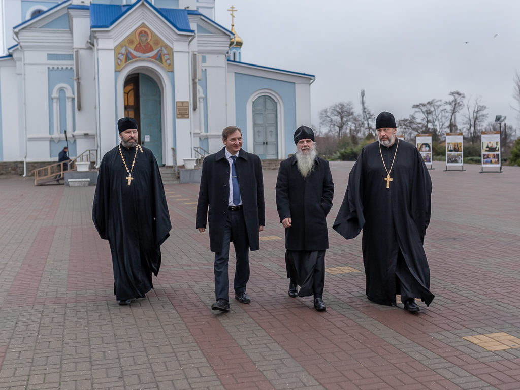 Экскурсию для высокого гостя провел древлехранитель Шахтинской епархии Илья Геннадиевич Шарков, который рассказал об истории созидания, разрушения и восстановления Покровской церкви г. Александровска-Грушевского, ныне кафедрального собора. Илья Геннадиевич рассказал об особенностях архитектуры донских храмов на примере собора.