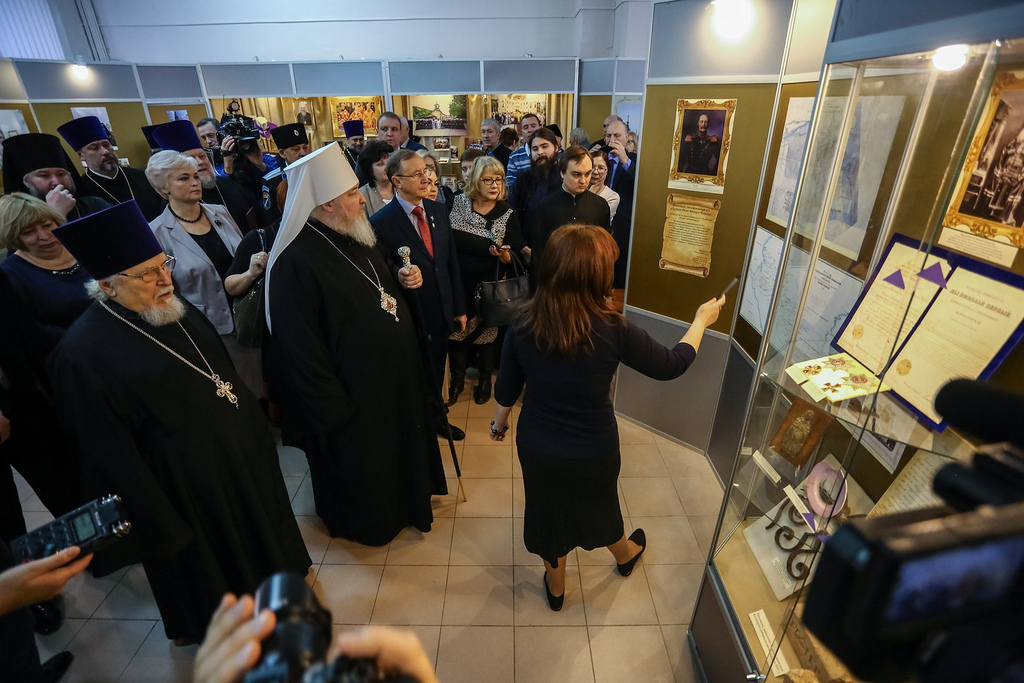 Для всех гостей была проведена экскурсия по выставке, на которой представлены уникальные документы, относящиеся к судьбоносным этапам в истории епархии с момента ее основания в 1843 году согласно указу Императора Николая I. Первоначально она называлась Кавказская и Черноморская. Гости музея увидели фотографии и литографии монастырей и храмов, которые были построены еще до учреждения самостоятельной епархии.