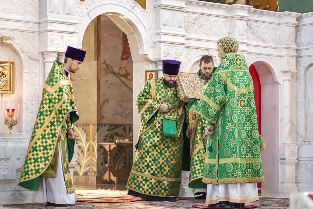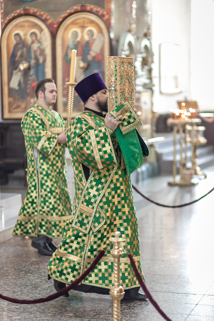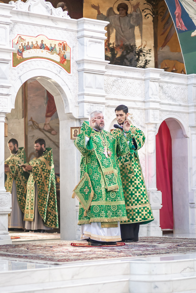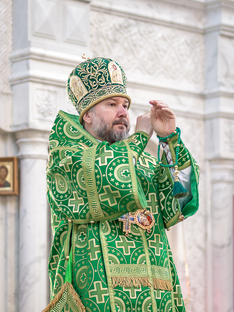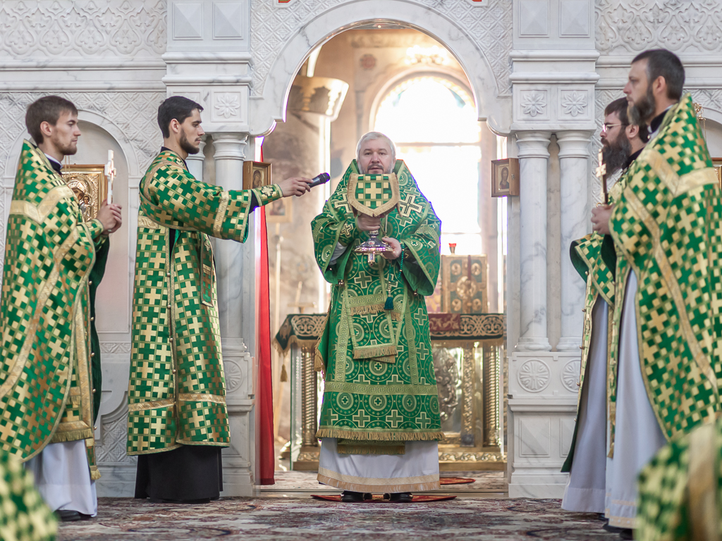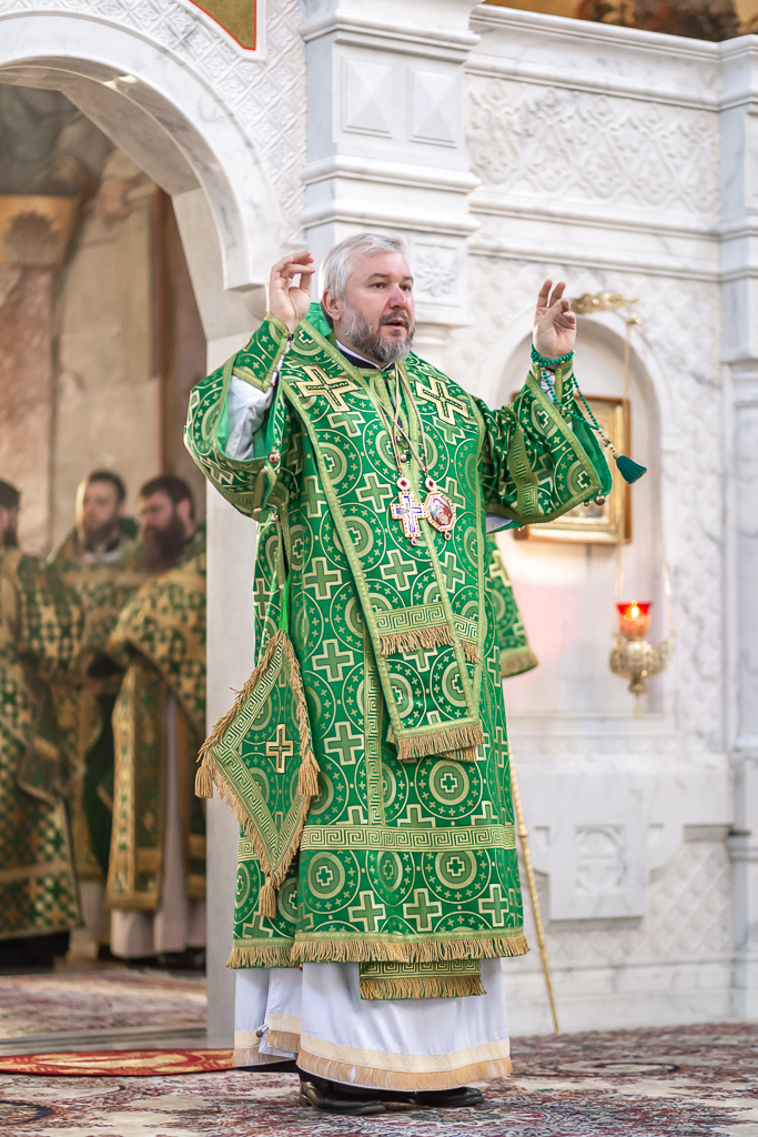 Его Преосвященству сослужили настоятель Покровского кафедрального собора города Шахты иерей Александр Теличкин, иерей Даниил Зырянов, иерей Илья Буланов, диакон Трофим Осяк и диакон Никита Осипов.