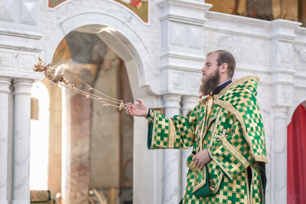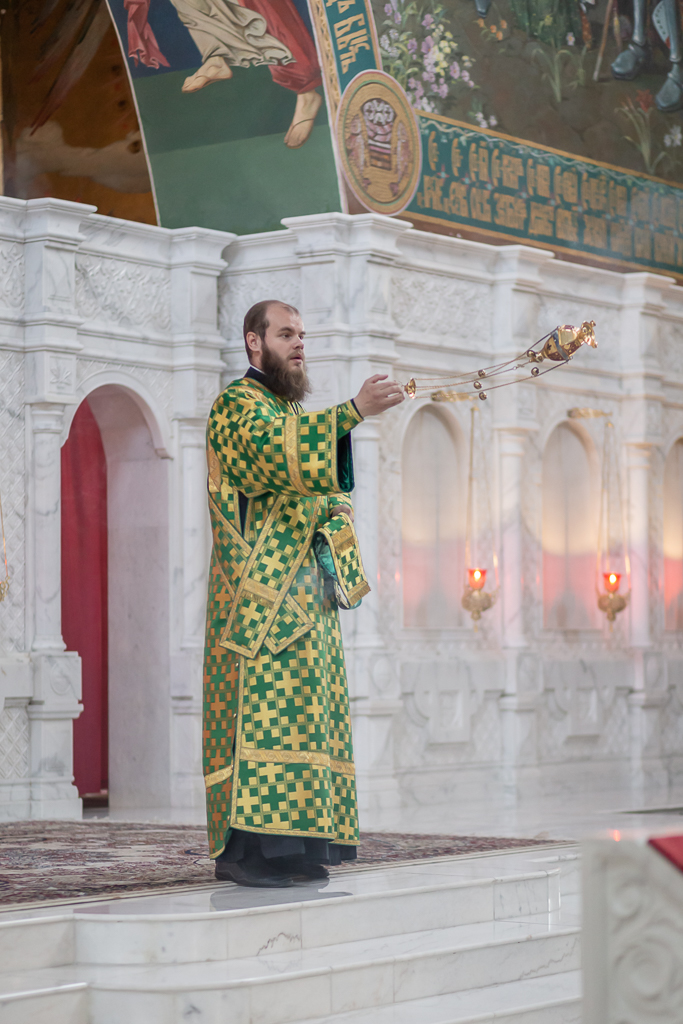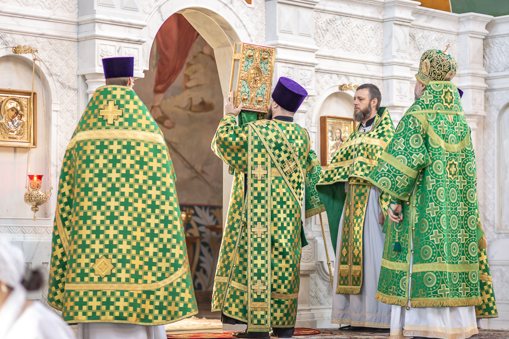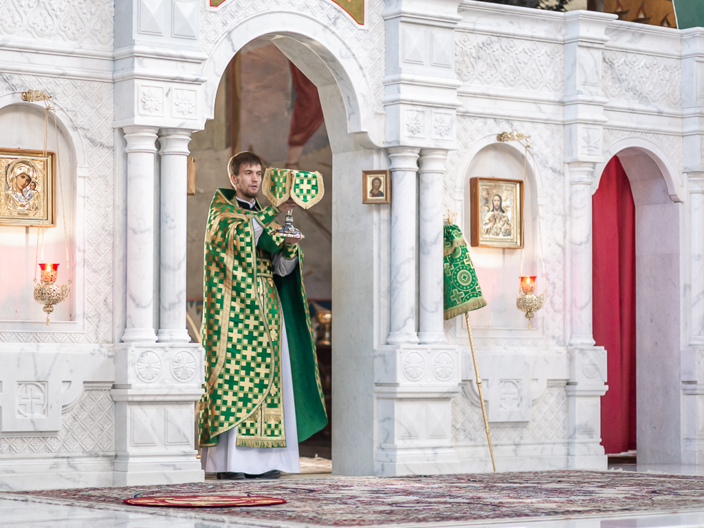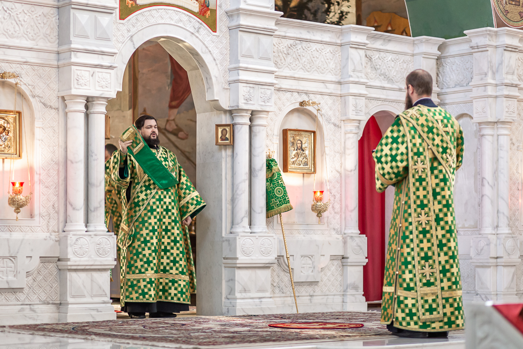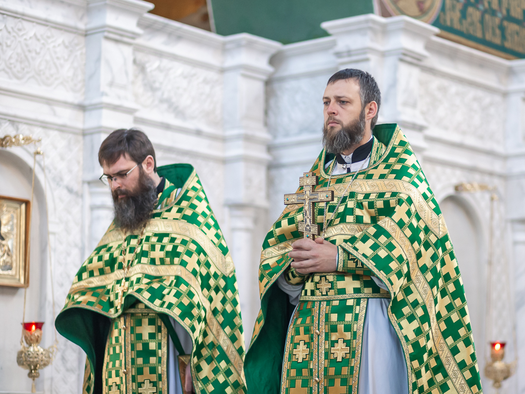 Его Преосвященству сослужили настоятель Покровского кафедрального собора города Шахты иерей Александр Теличкин, иерей Даниил Зырянов, иерей Илья Буланов, диакон Трофим Осяк и диакон Никита Осипов.