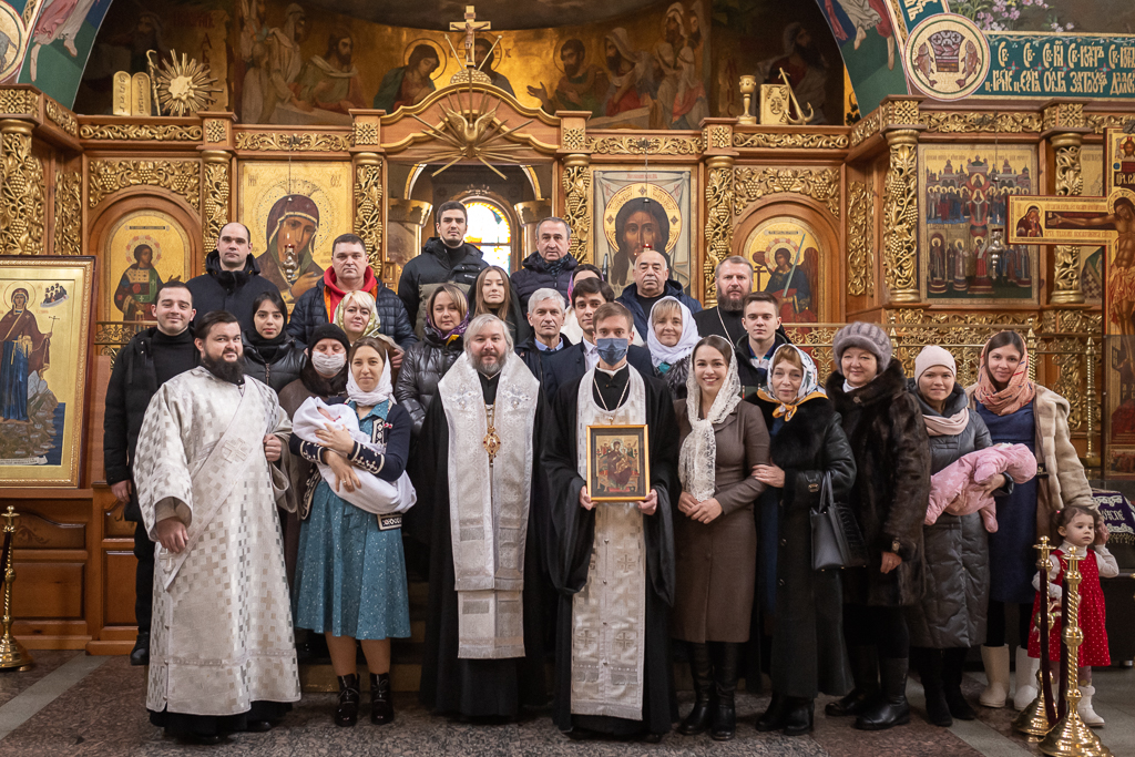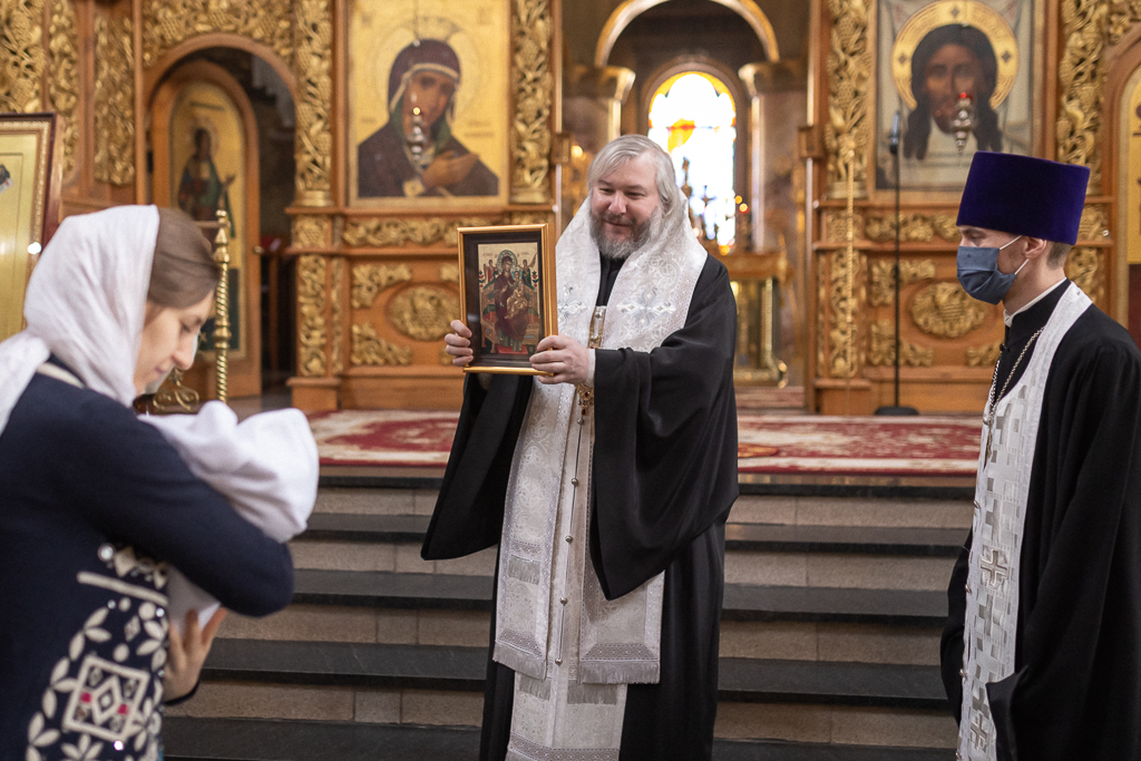 По окончании молитвы архипастырь обратился к родителям и восприемникам с поздравлением с первыми в жизни ребенка совершившимися таинствами Крещения и Миропомазания и на молитвенную память вручил образ Пресвятой Богородицы.
