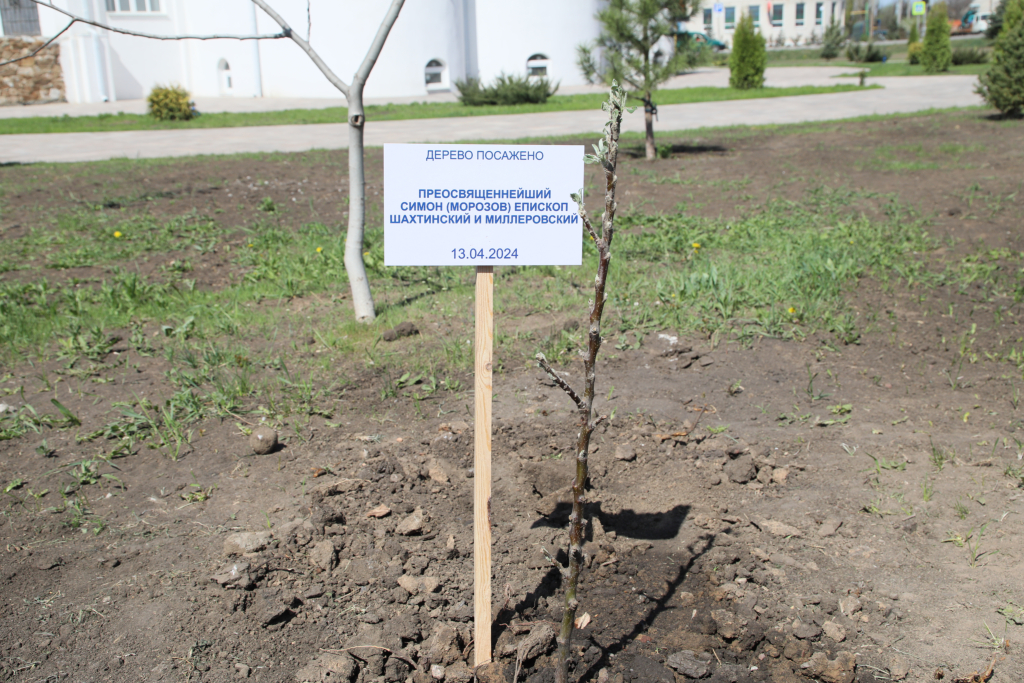 13 апреля 2024 года, после богослужения в храме великомученика Пантелеимона города Миллерово епископ Шахтинский и Миллеровский Симон принял участие в весеннем Дне древонасаждения, на церковном подворье были посажены плодовые деревья.