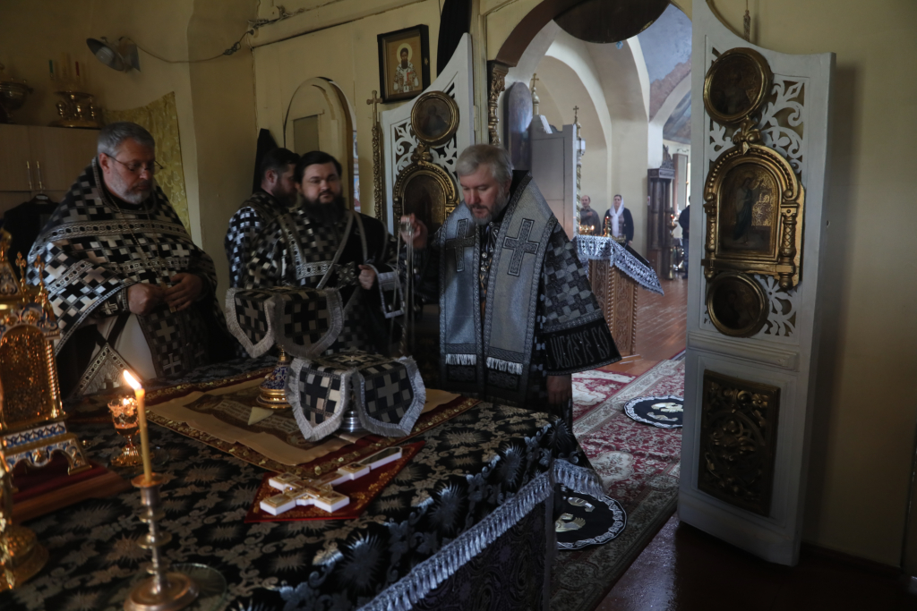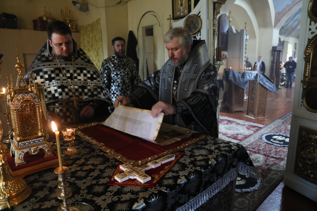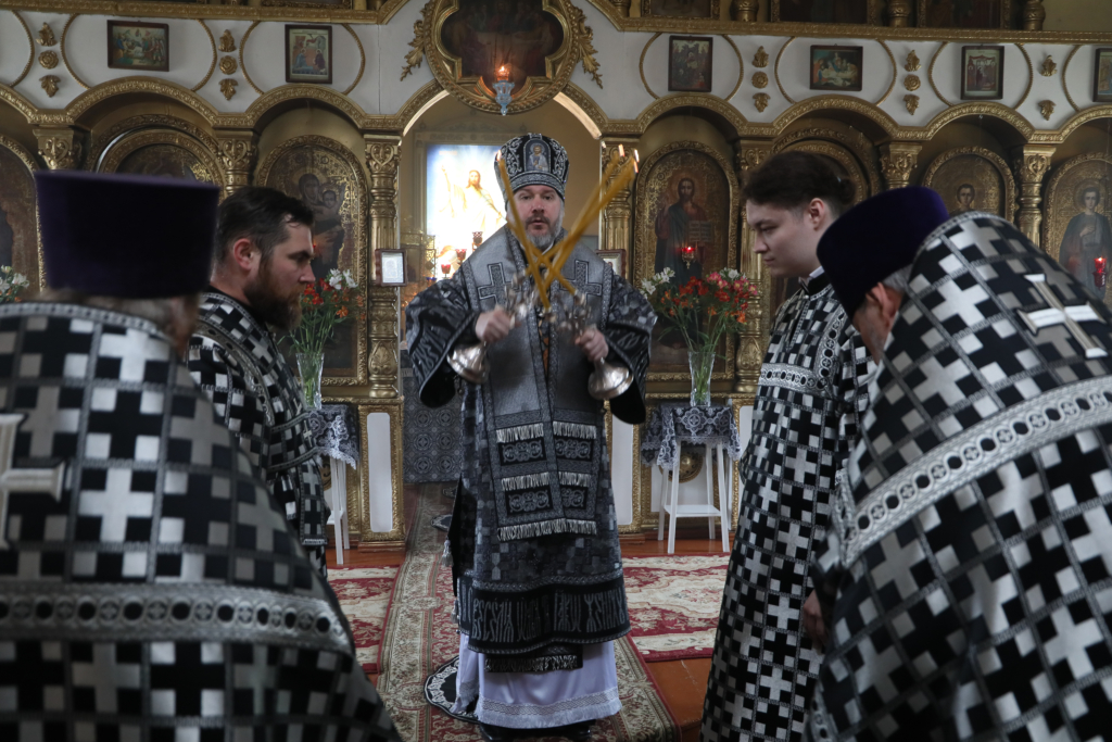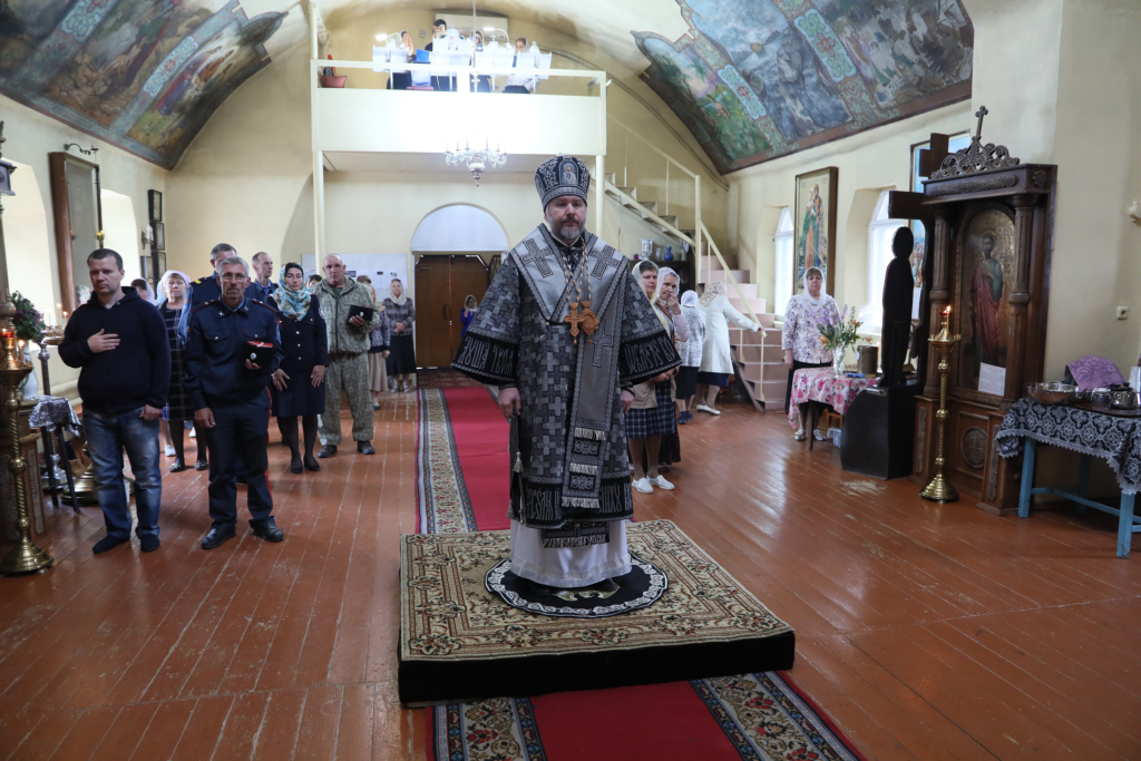 Его Преосвященству сослужили благочинный приходов Каменского округа иерей Владислав Касьянов, настоятель храма протоиерей Анатолий Сахно, клирик храма иерей Николай Налёткин, иерей Михаил Дубянский и диакон Трофим Осяк.