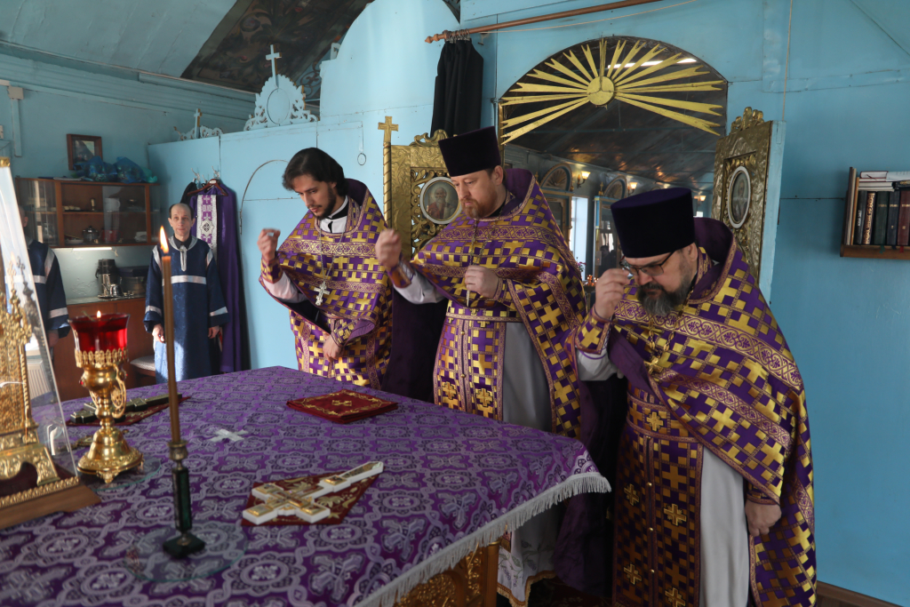 Его Преосвященству сослужили благочинный приходов Новошахтинского округа протоиерей Роман Амплеев, настоятель храма протоиерей Василий Хадыкин, иерей Михаил Дубянский и диакон Трофим Осяк.