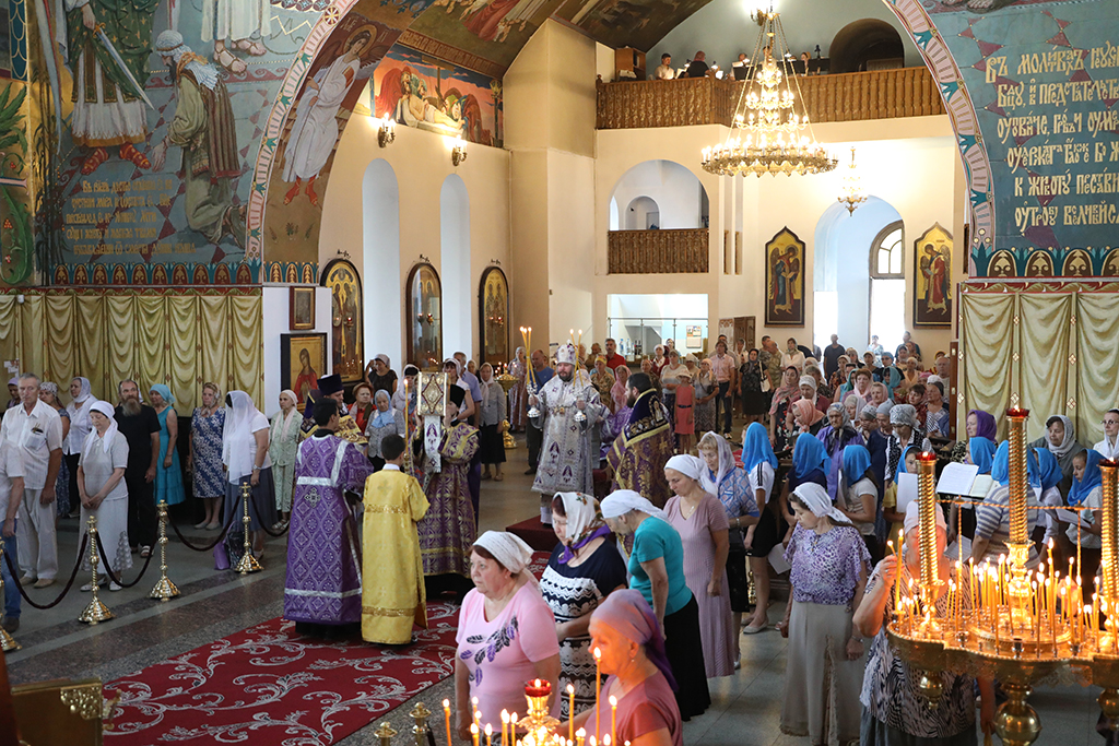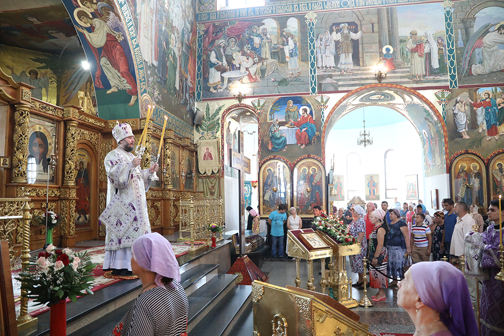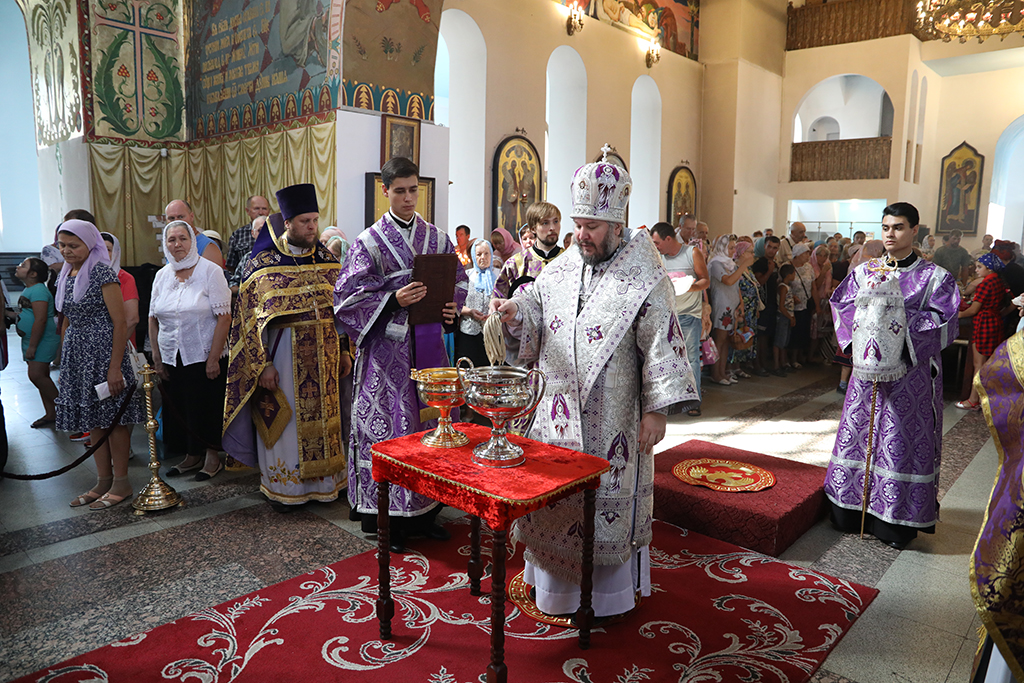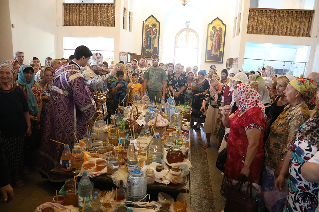 Помолиться в храме, несмотря на будний день, пришло множество прихожан. По традиции на Божественной литургии в этот день совершается освящение меда нового сбора. Архипастырь освятил принесенный мед, окропив его святой водой.