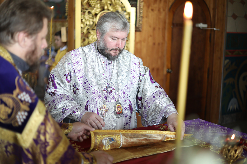 14 августа 2018 года, в первый день Успенского поста за богослужением воспоминается происхождение (изнесение) Честных Древ Животворящего Креста Господня, возносятся молитвы пред Крестом Господним, изнесенным накануне за вечерним богослужением, из алтаря на середину храма для поклонения верующих.