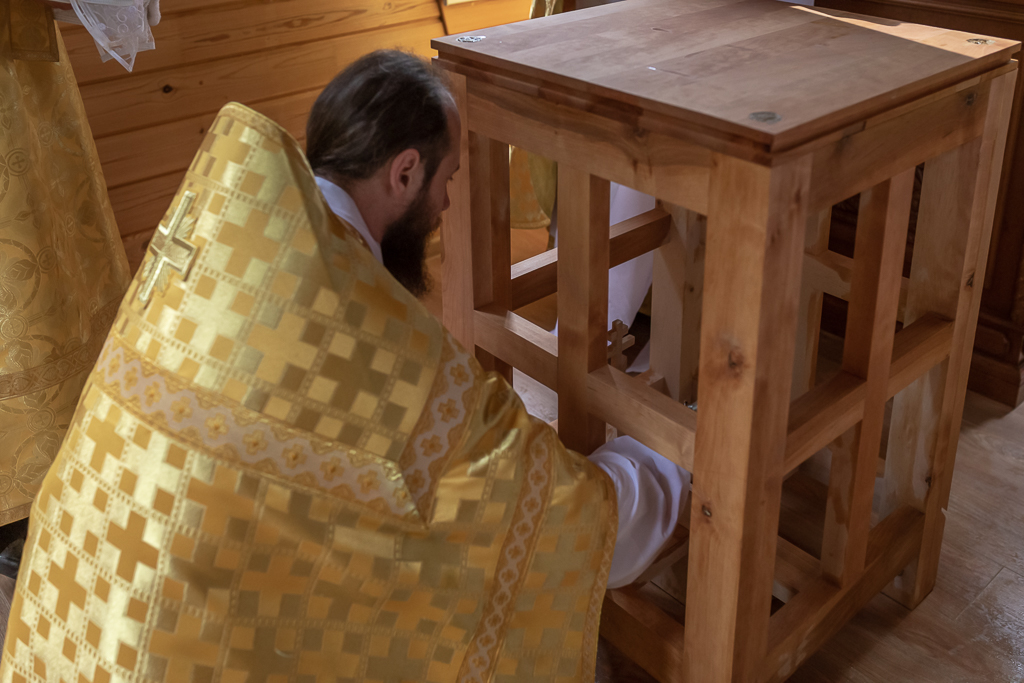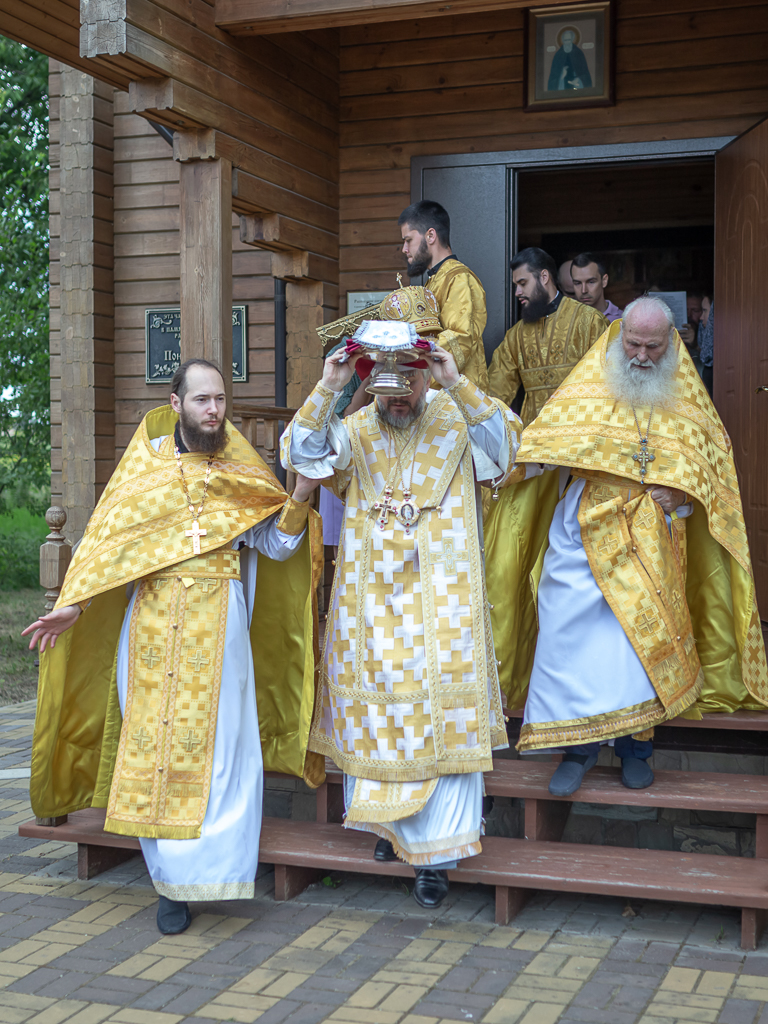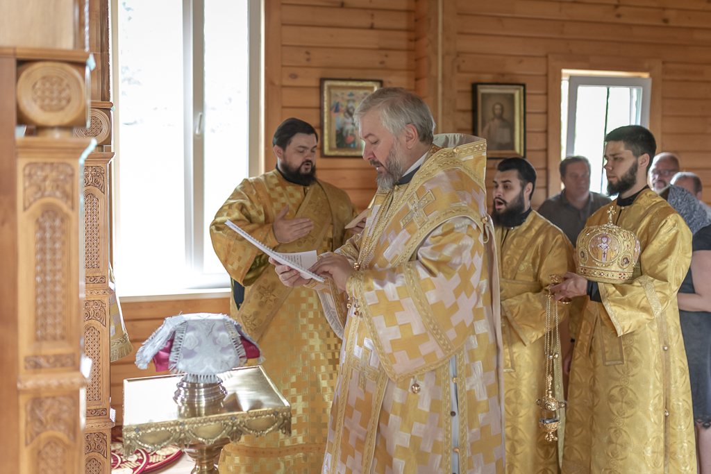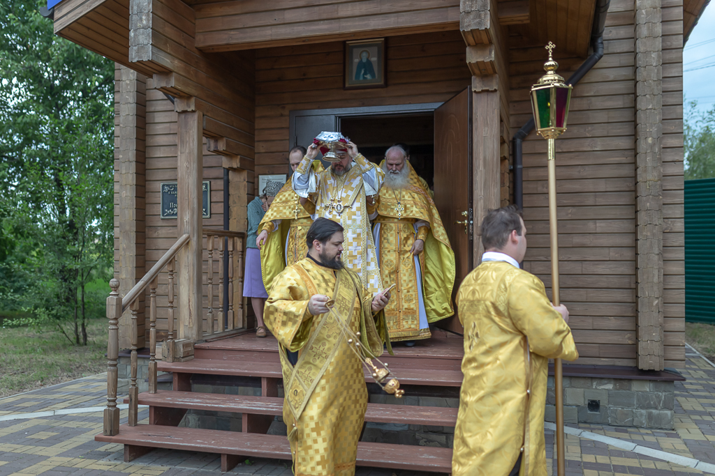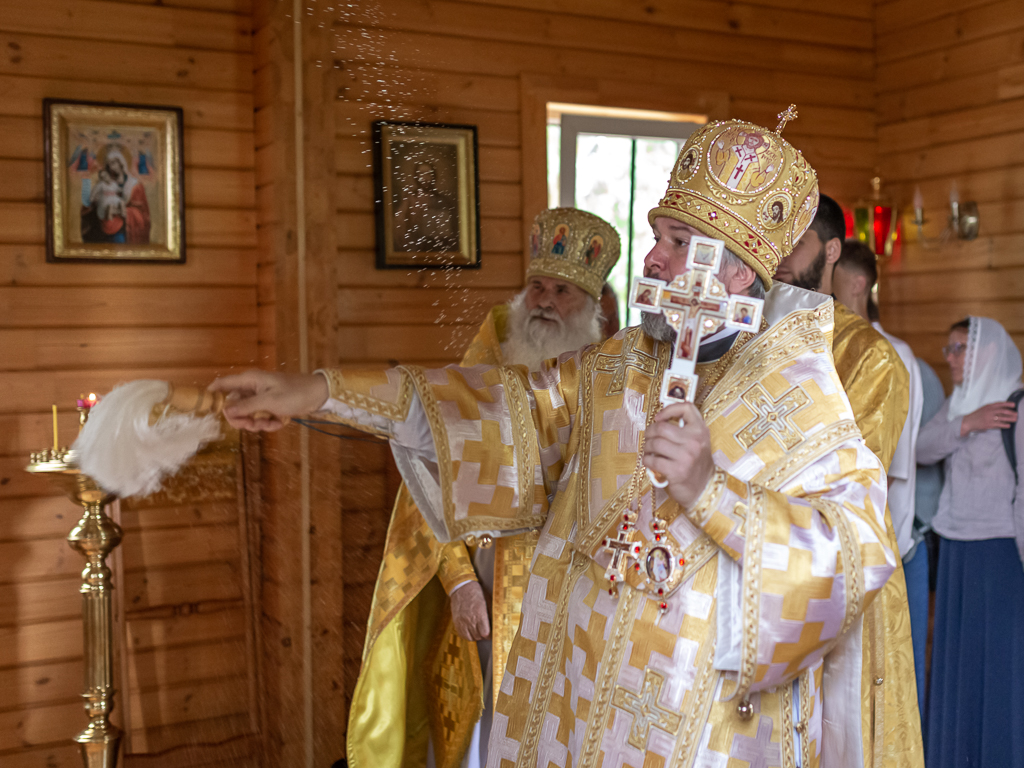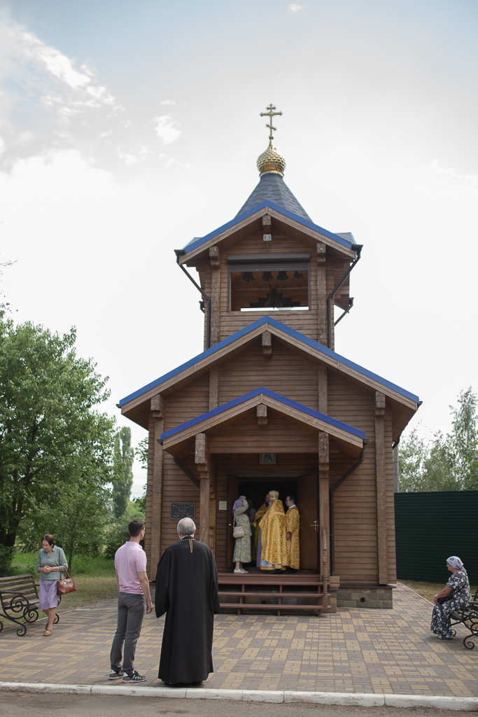 После чина освящения Преосвященнейший епископ Симон совершил Божественную литургию. Архиерею сослужили духовник Шахтинской епархии протоиерей Александр Минин, клирики Покровского кафедрального собора города Шахты иерей Олег Брехов и диакон Трофим Осяк.