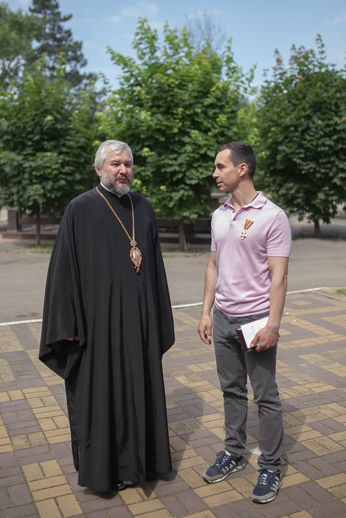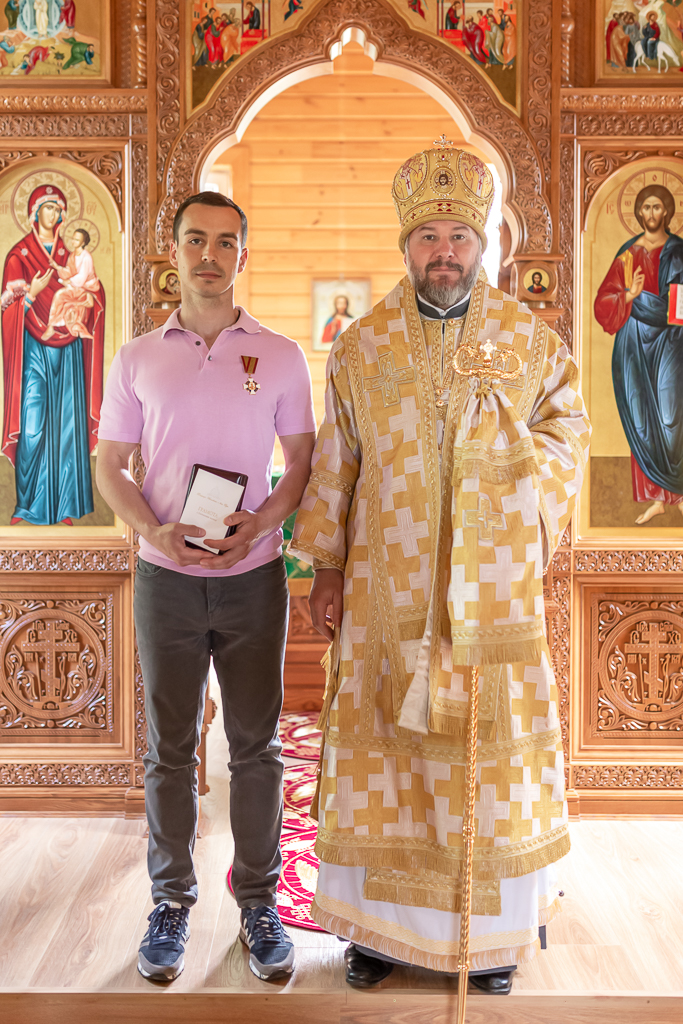 Во внимание к помощи в строительстве и благоукрашении храма Преосвященнейший епископ Симон вручил Е.С. Понамаренко патриаршую награду Медаль Ордена Русской Православной Церкви святого благоверного князя Даниила Московского.