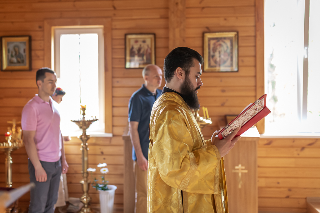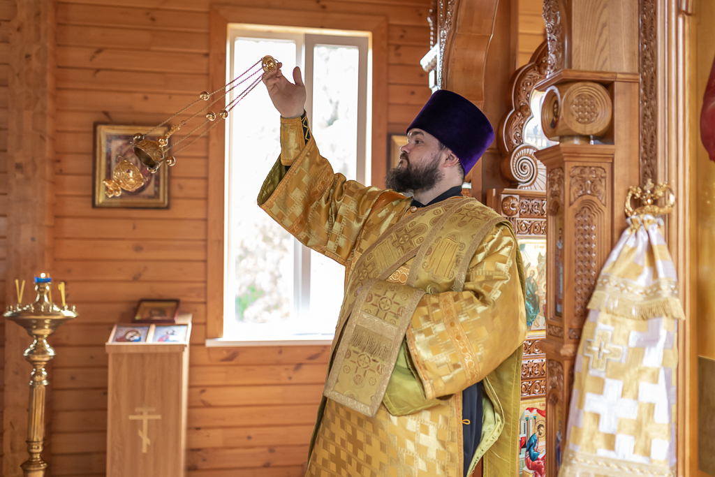 Перед причастием с проповедью к молящимся обратился священник Олег.
