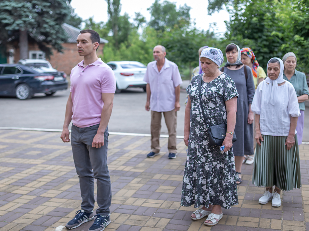 За богослужением молились прихожане и попечитель храма, депутат Законодательного собрания Ростовской области Евгений Сергеевич Понамаренко, сын погибшего Сергея Анатольевича Понамаренко, в память о котором воздвигнут храм.