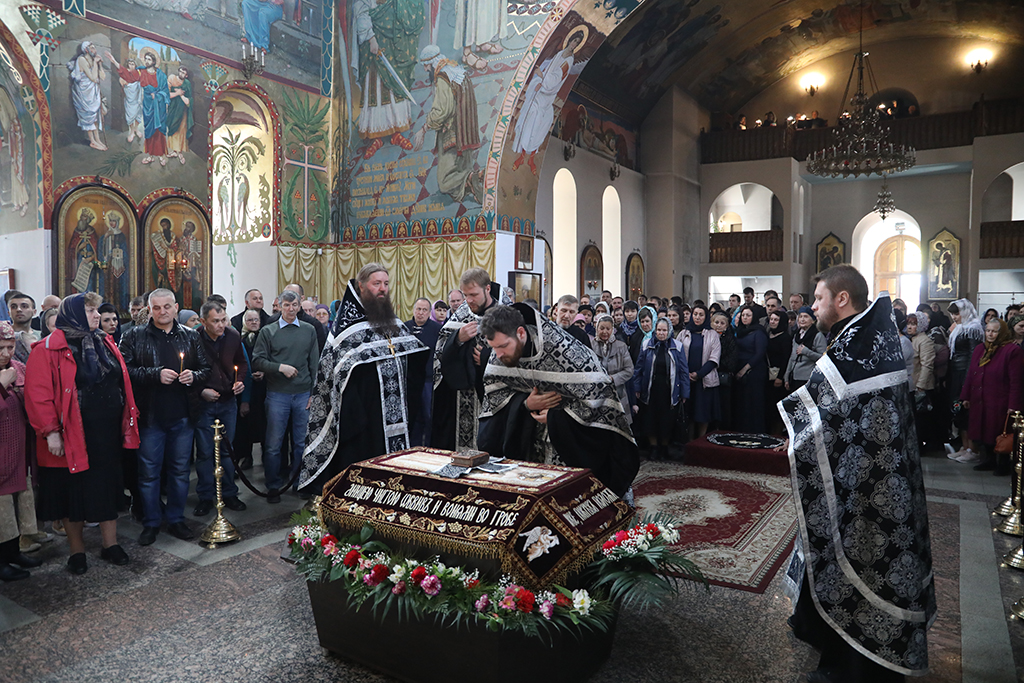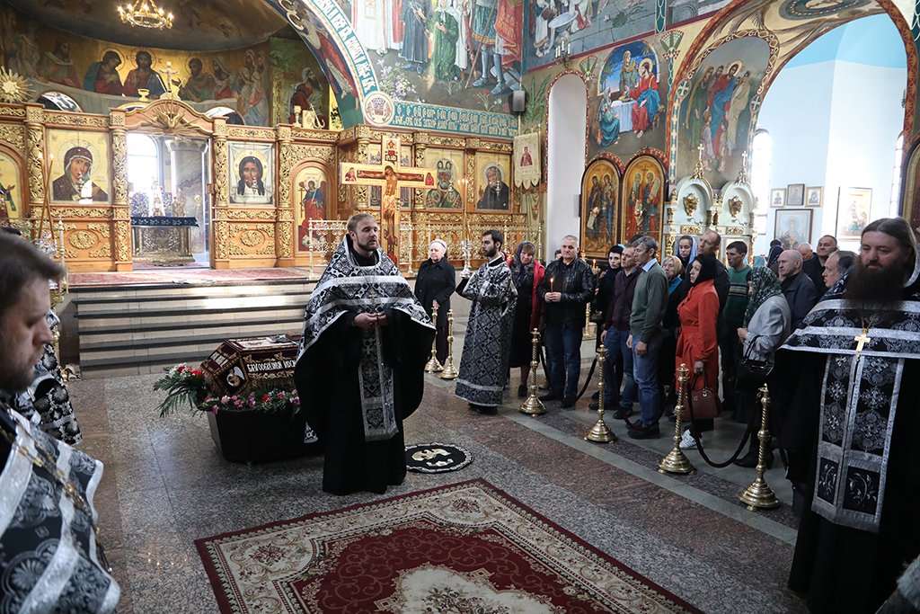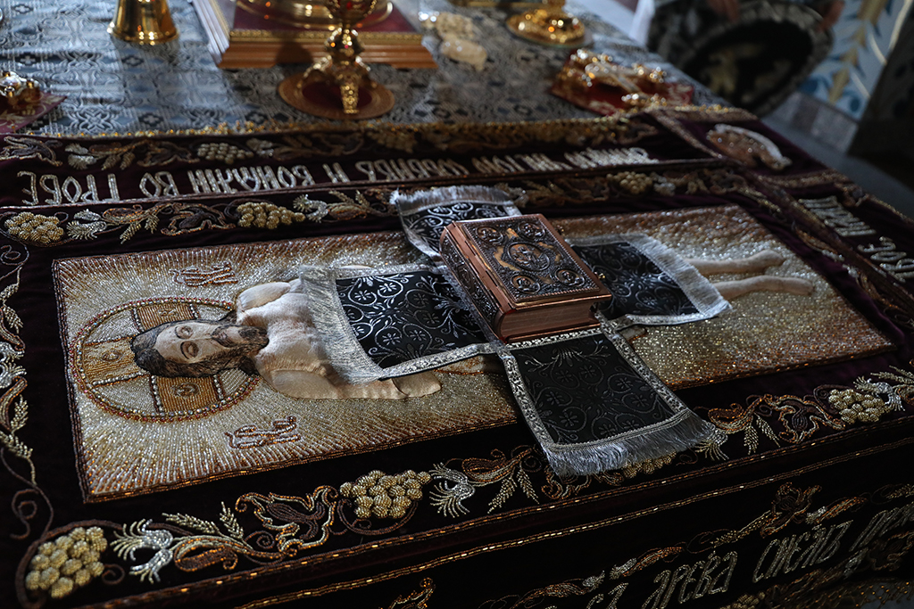 Под пение тропарей, повествующих о тех событиях, Святая Плащаница с изображением Спасителя была вынесена из алтаря на середину храма.