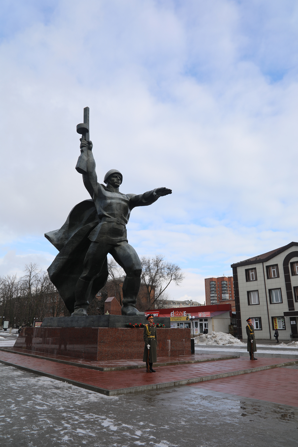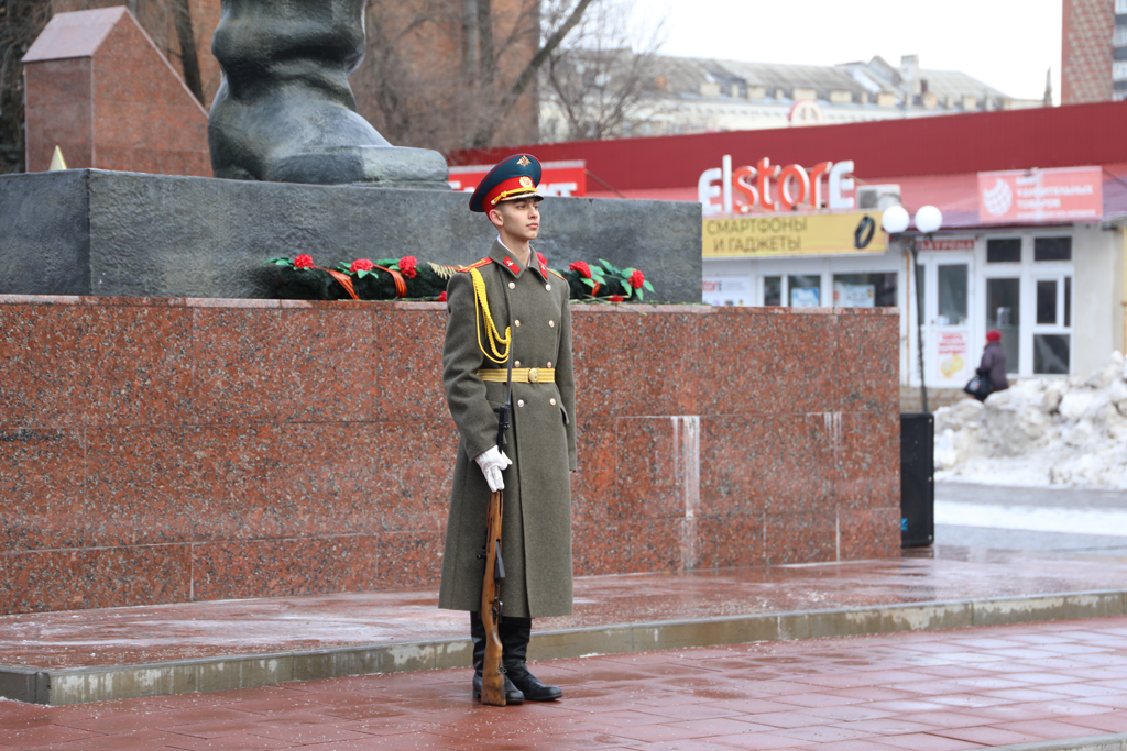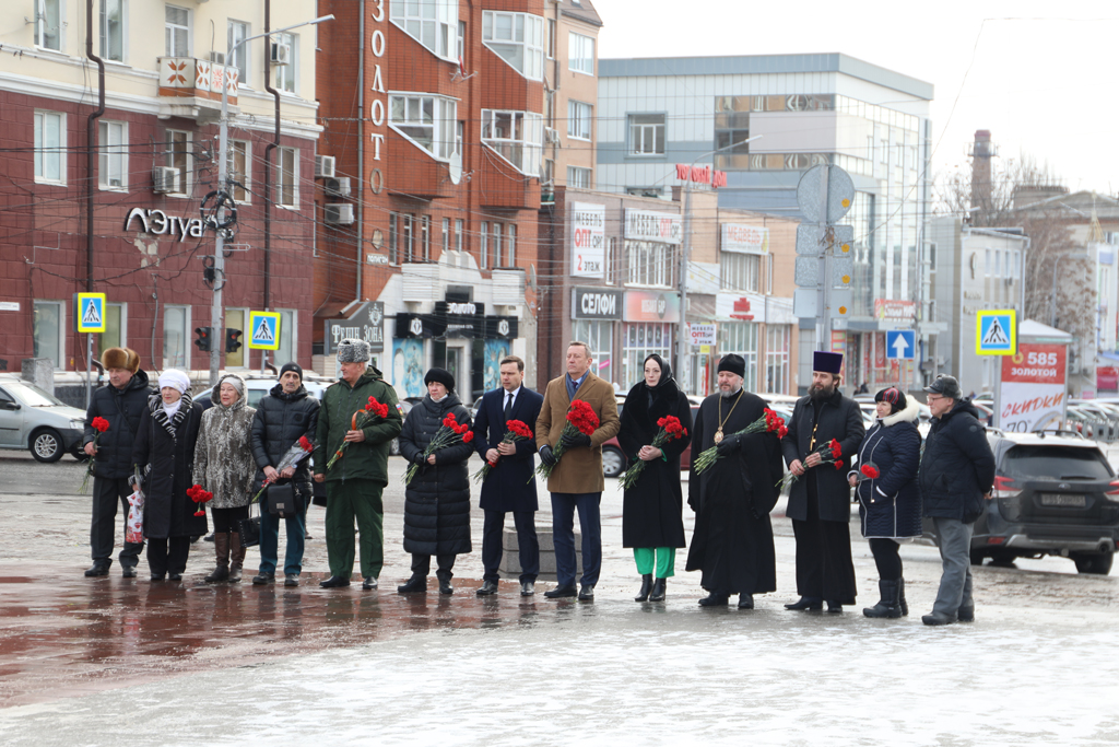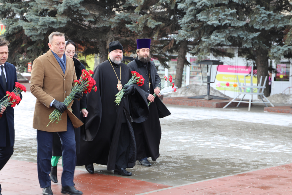 Ко Дню защитника Отечества епископ Симон принял участие в возложении цветов к памятнику площади 40-летия Победы