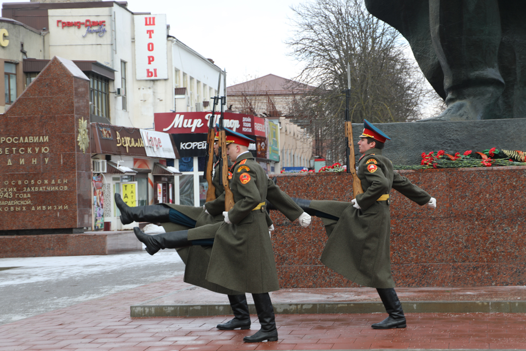 По торжественному случаю на площади Победы нес вахту почетный караул города.