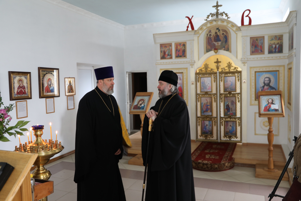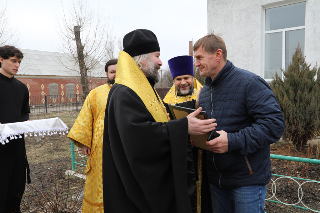 Вместе с архипастырем молились благочинный приходов Сулинского церковного округа иерей Владислав Касьянов, настоятель храма иерей Сергий Столяров, диакон Трофим Осяк, благотворители храма и прихожане.