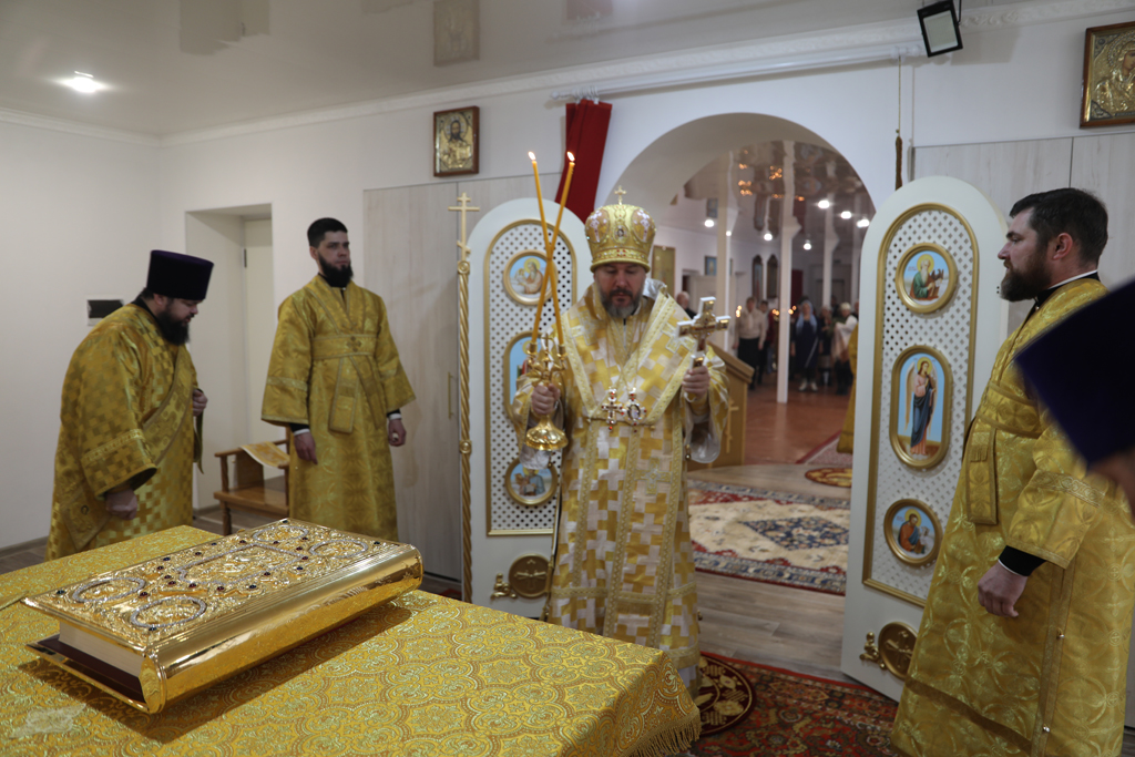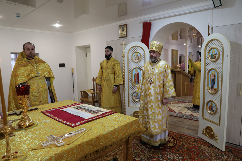 Его Преосвященству сослужили благочинный приходов Новошахтинского округа протоиерей Роман Амплеев, настоятель храма иерей Антоний Колпаков, иерей Михаил Дубянский и диакон Трофим Осяк.