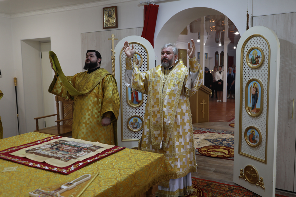 По завершении Литургии духовенство совершило славление перед праздничной иконой.