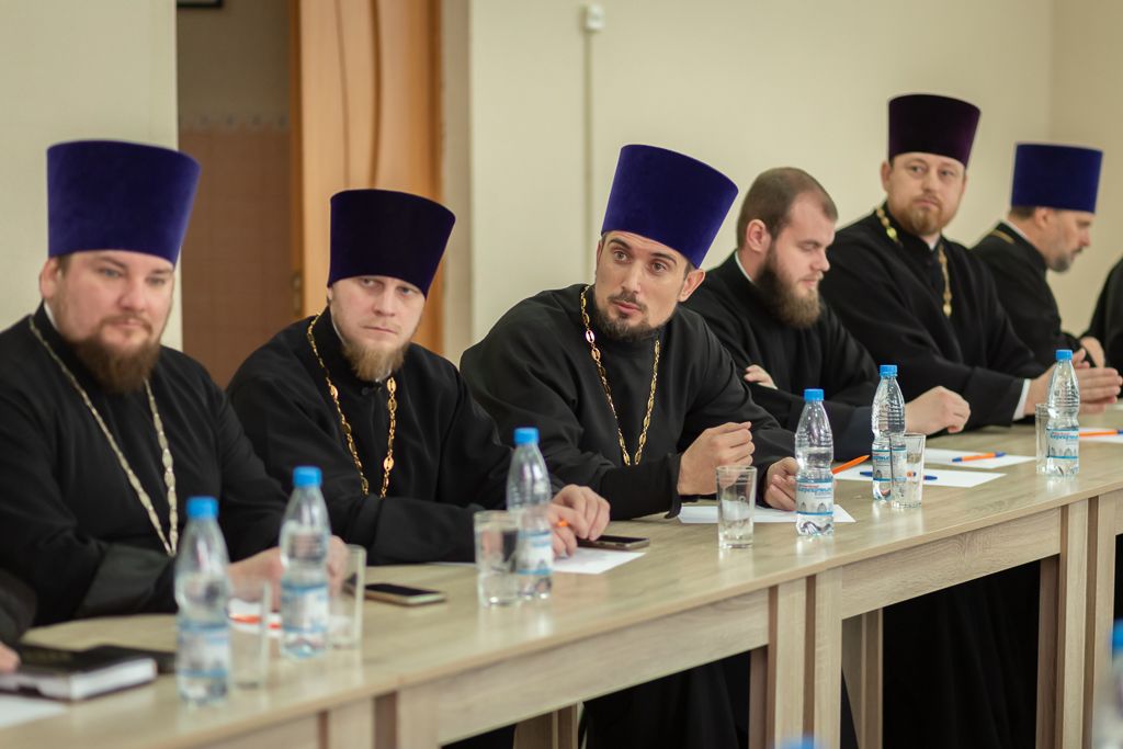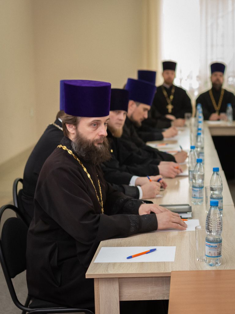 Владыка Симон обратился к духовенству с приветственным словом и ознакомил участников с докладом Святейшего Патриарха Кирилла на Епархиальном собрании Московской епархии 2022 года. Главными тезисами для обсуждения стали COVID-19, военные действия на Донбассе, угрозы церковному единству на Украине, противостояние злу, трансгуманизм, семья, аборт, о мигрантах, национальная идея.