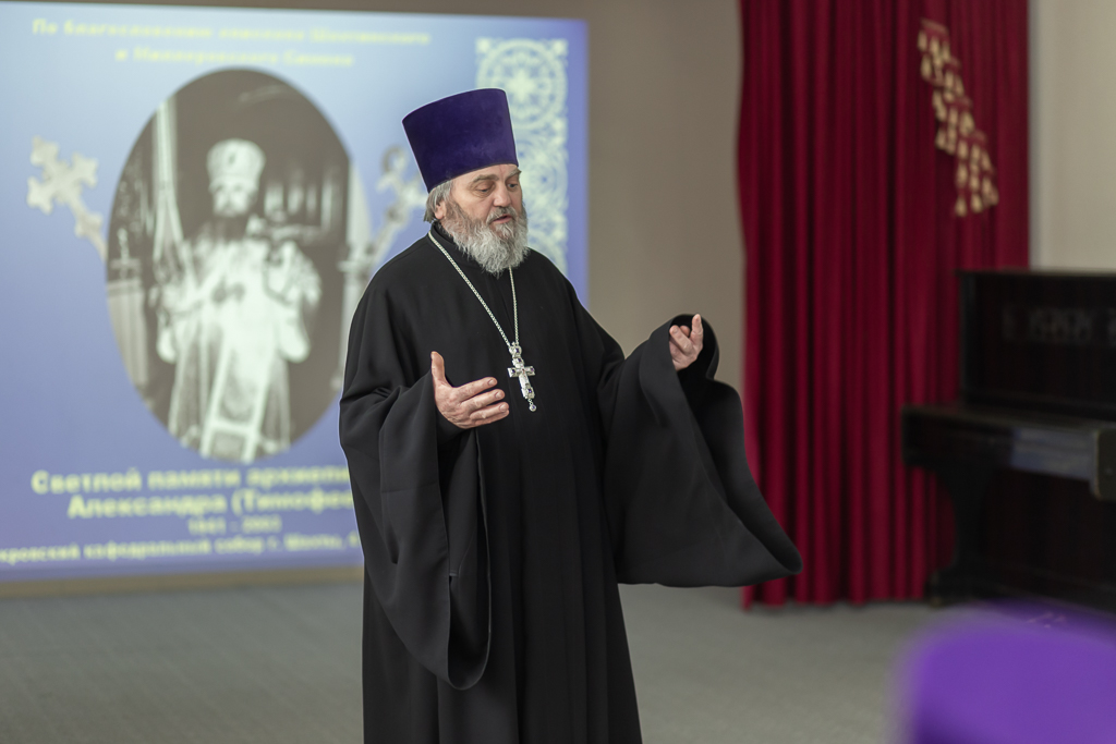 «Поминайте наставников ваших, которые проповедовали вам слово Божие, и, взирая на кончину их жизни, подражайте вере их» (Евр. 13, 7), – призывает нас святой апостол Павел. Многим собравшимся в актовом зале не понаслышке знакомо имя архиепископа Александра, но особую роль приснопоминаемый Владыка Александр сыграл в духовной жизни Преосвященнейшего Владыки Симона. Епископ Симон любезно поделился с собравшимися своими воспоминаниями о даровитом архиерее, добром, честном и светлом человеке.