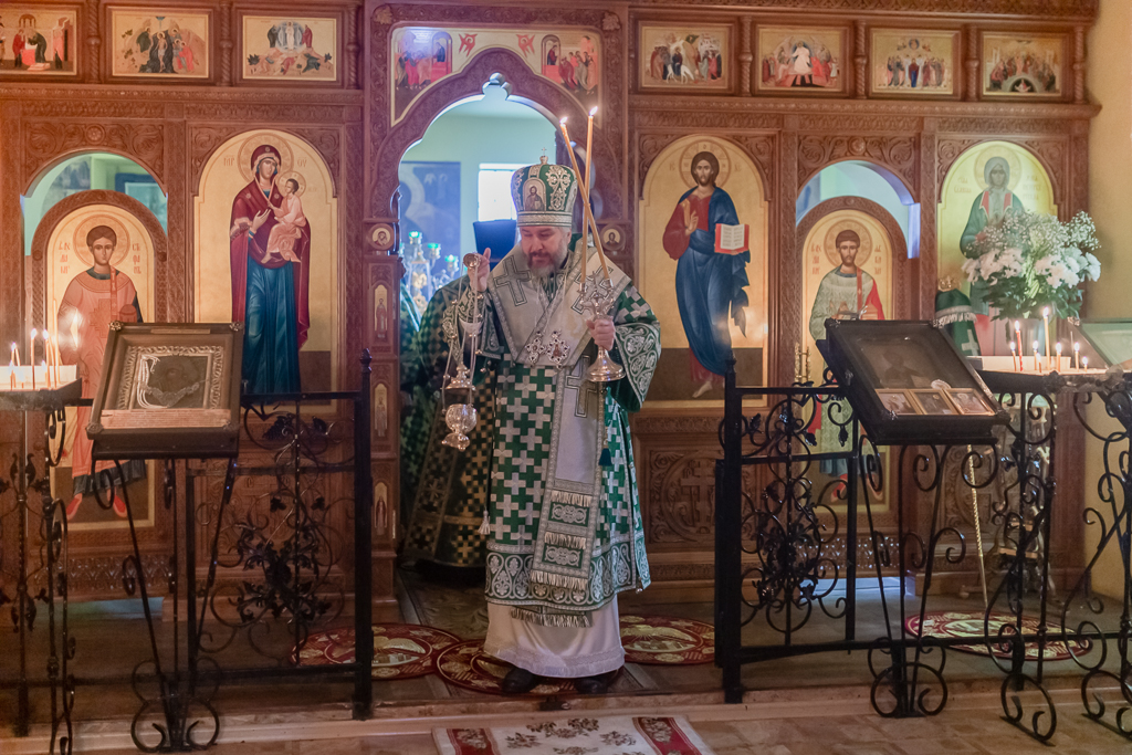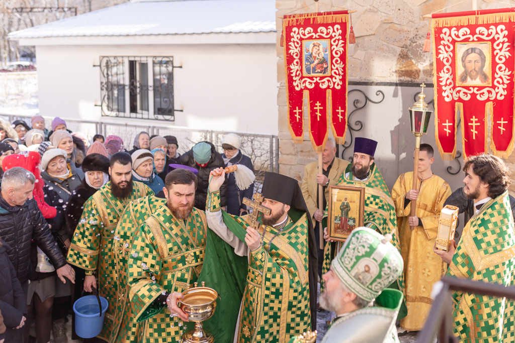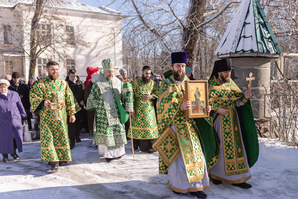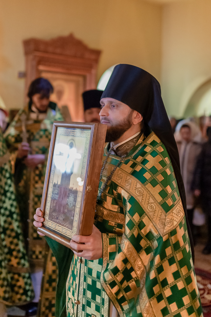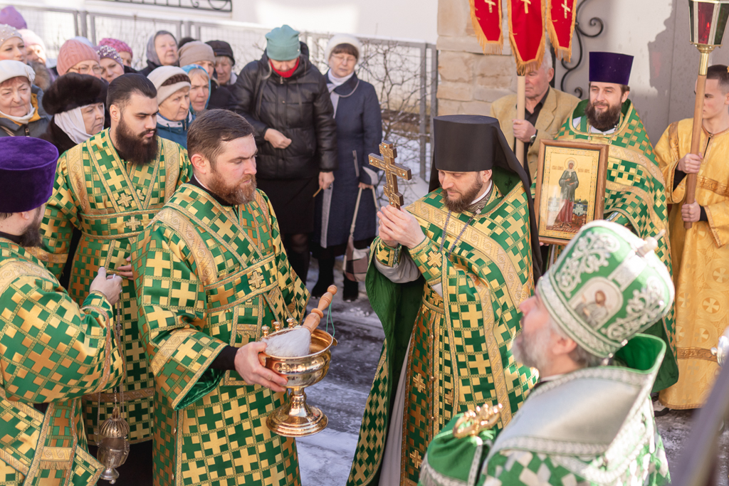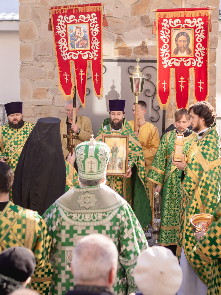 По завершении Литургии духовенство и прихожане во главе с архипастырем совершили крестный ход, прославляя небесную покровительницу прихода.