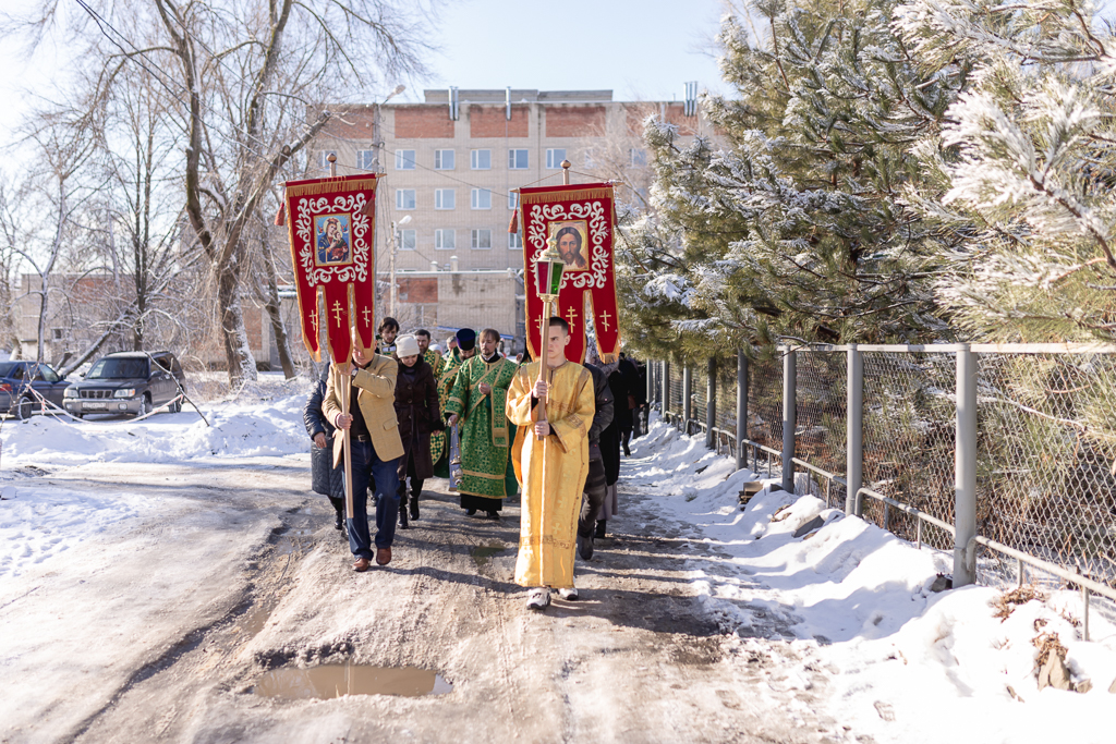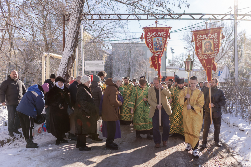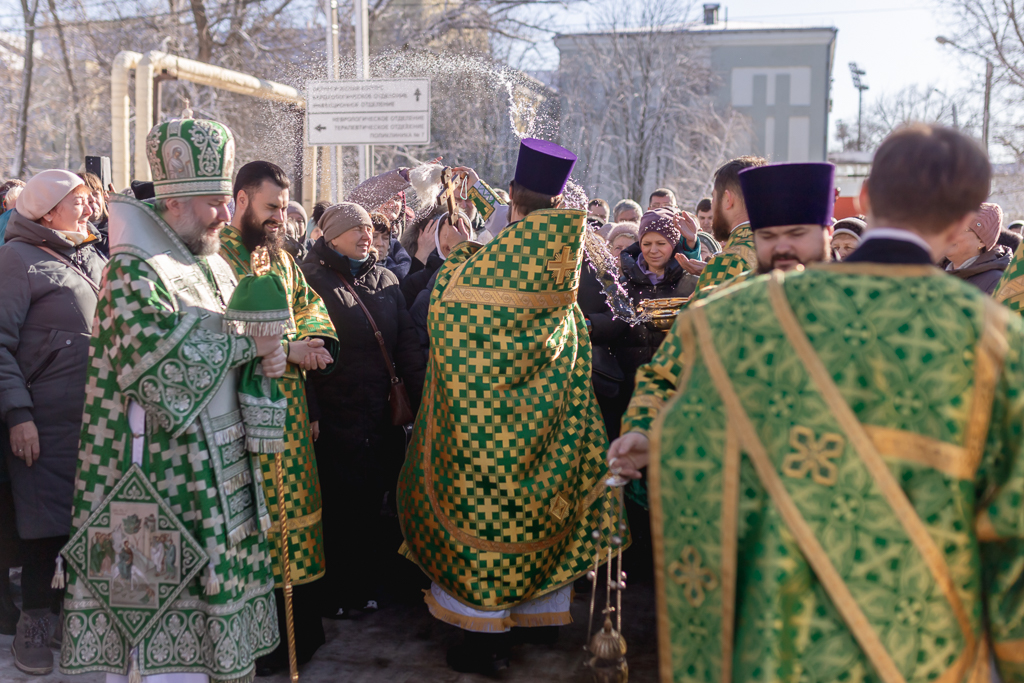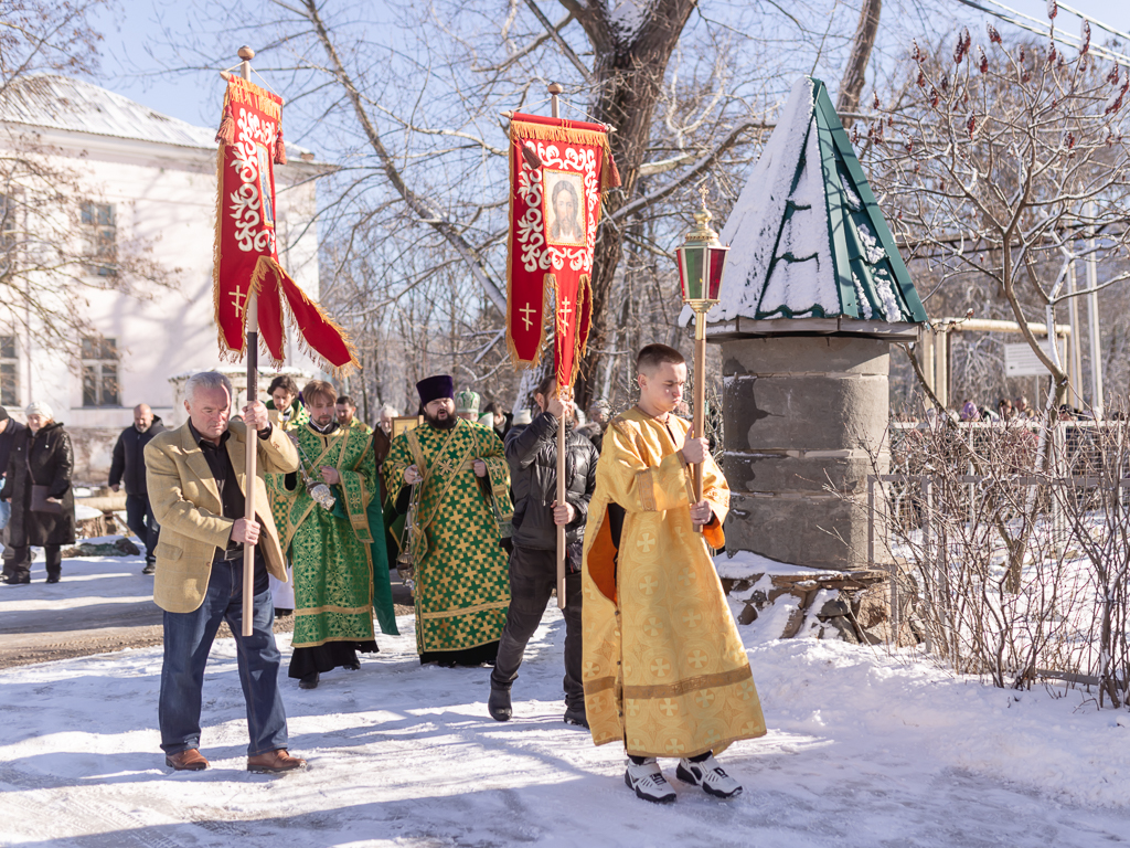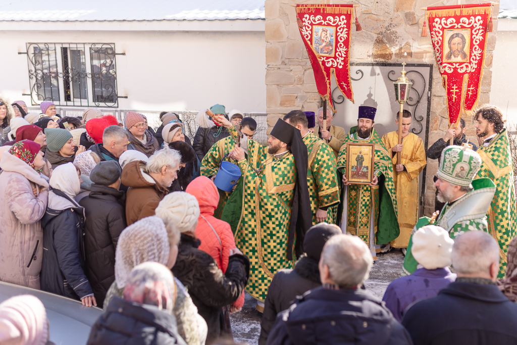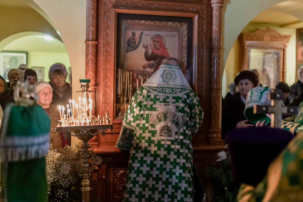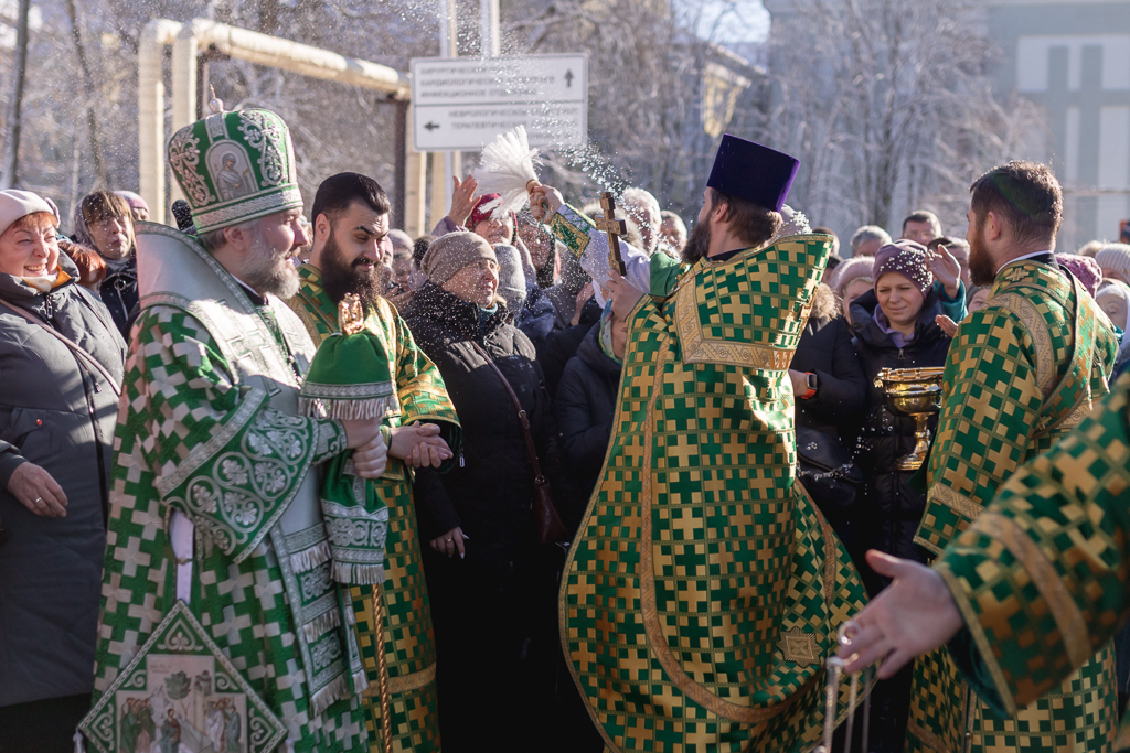 По завершении Литургии духовенство и прихожане во главе с архипастырем совершили крестный ход, прославляя небесную покровительницу прихода.