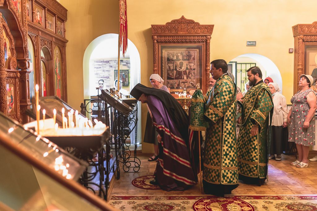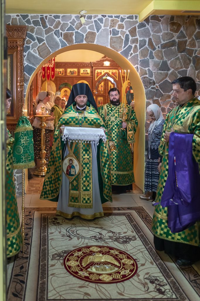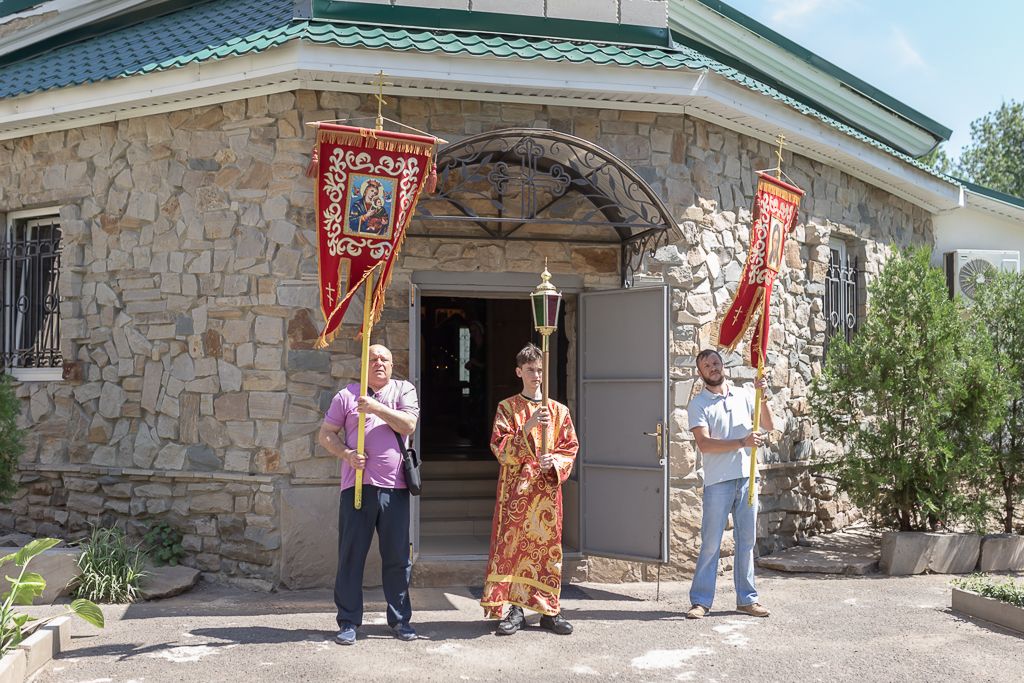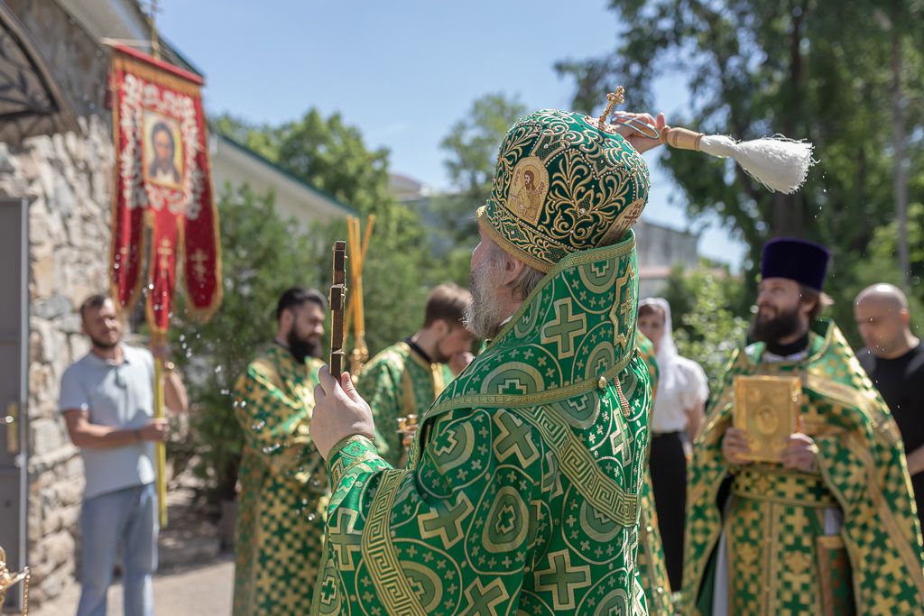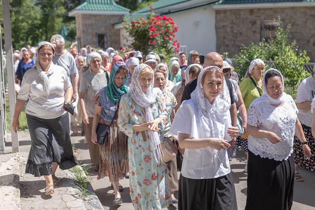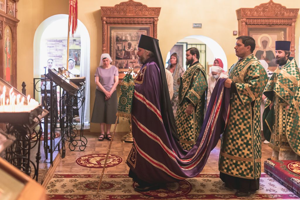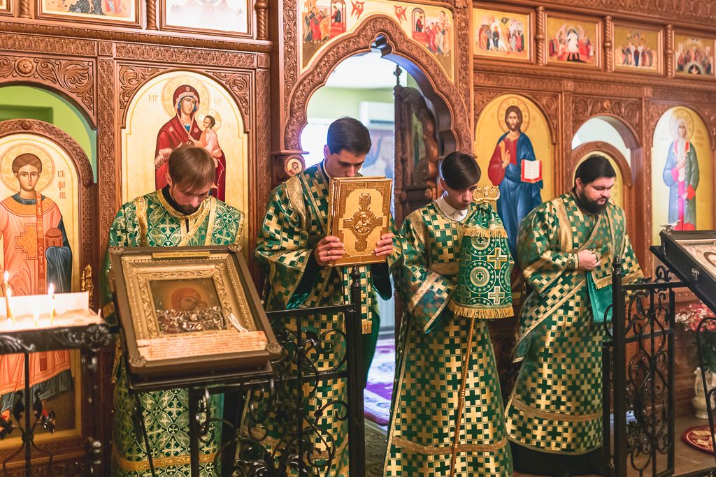 По завершении Литургии духовенство и прихожане во главе с архипастырем совершили крестный ход, прославляя небесную покровительницу храма.