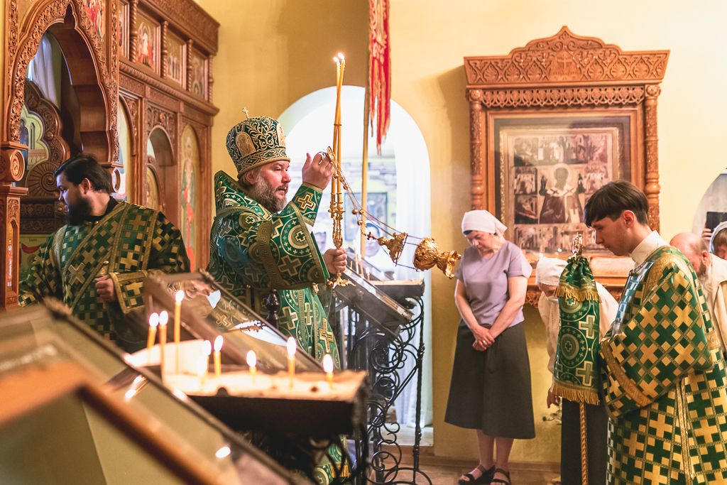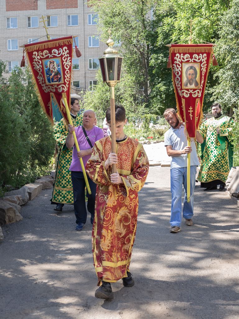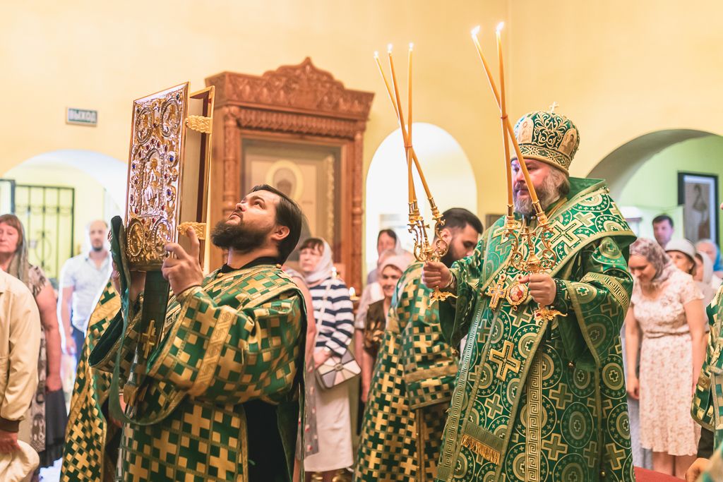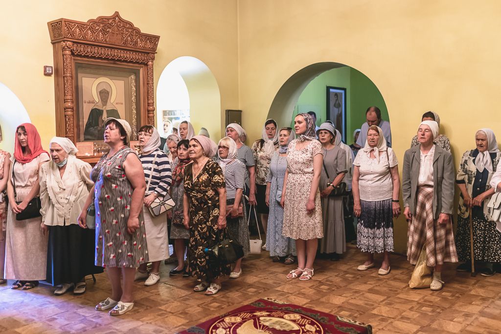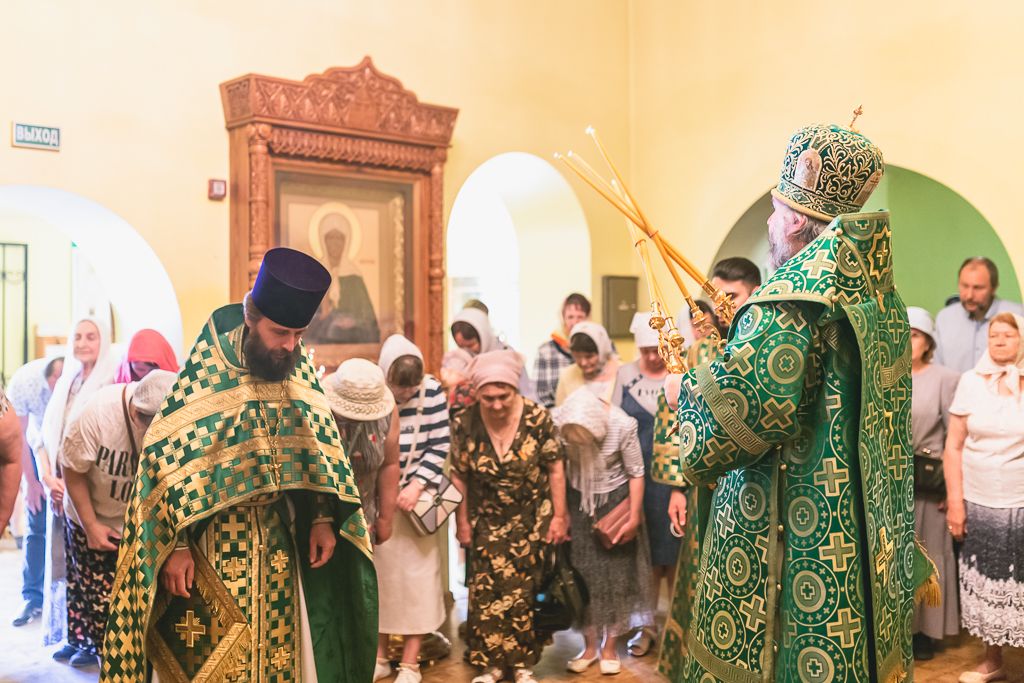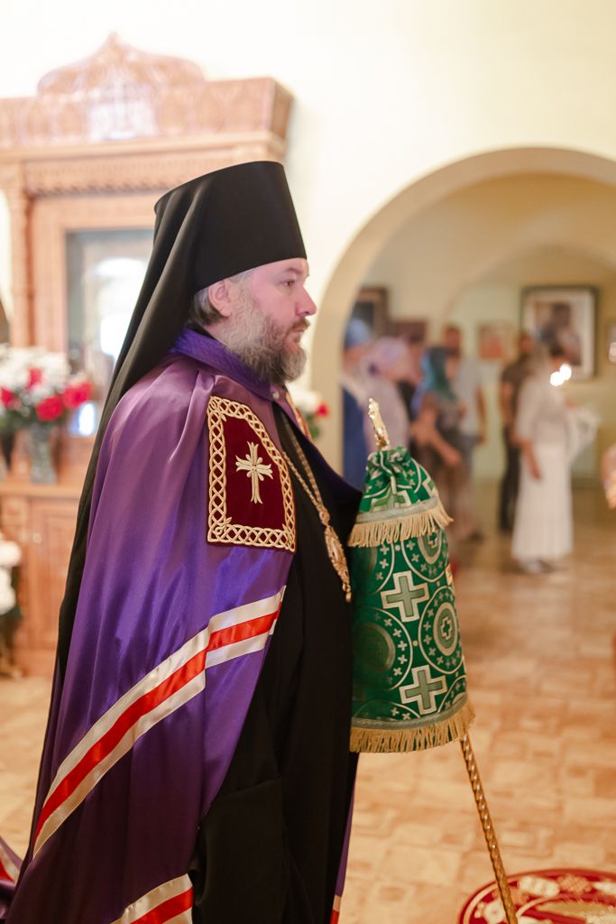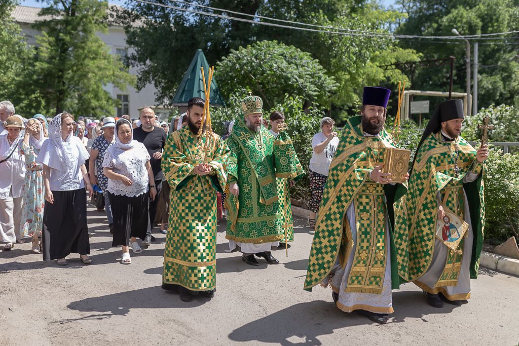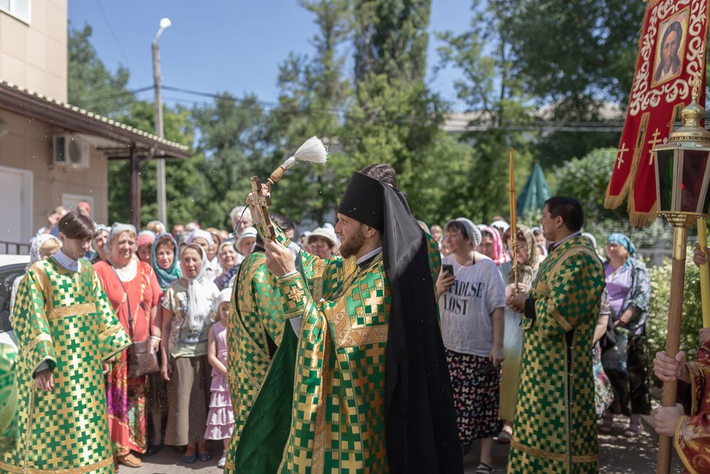 По завершении Литургии духовенство и прихожане во главе с архипастырем совершили крестный ход, прославляя небесную покровительницу храма.