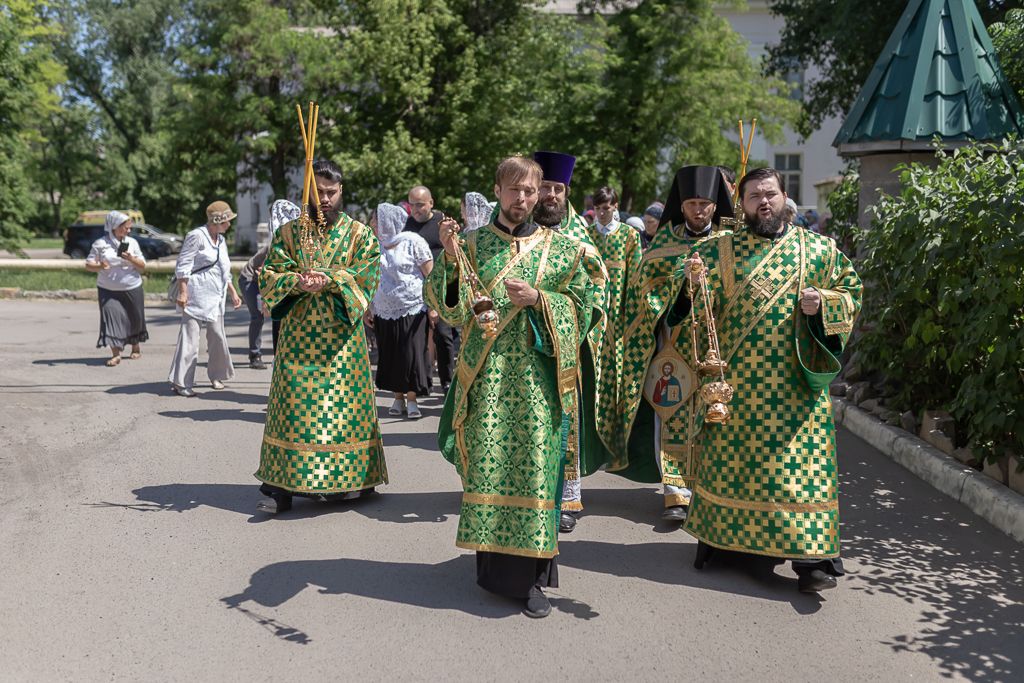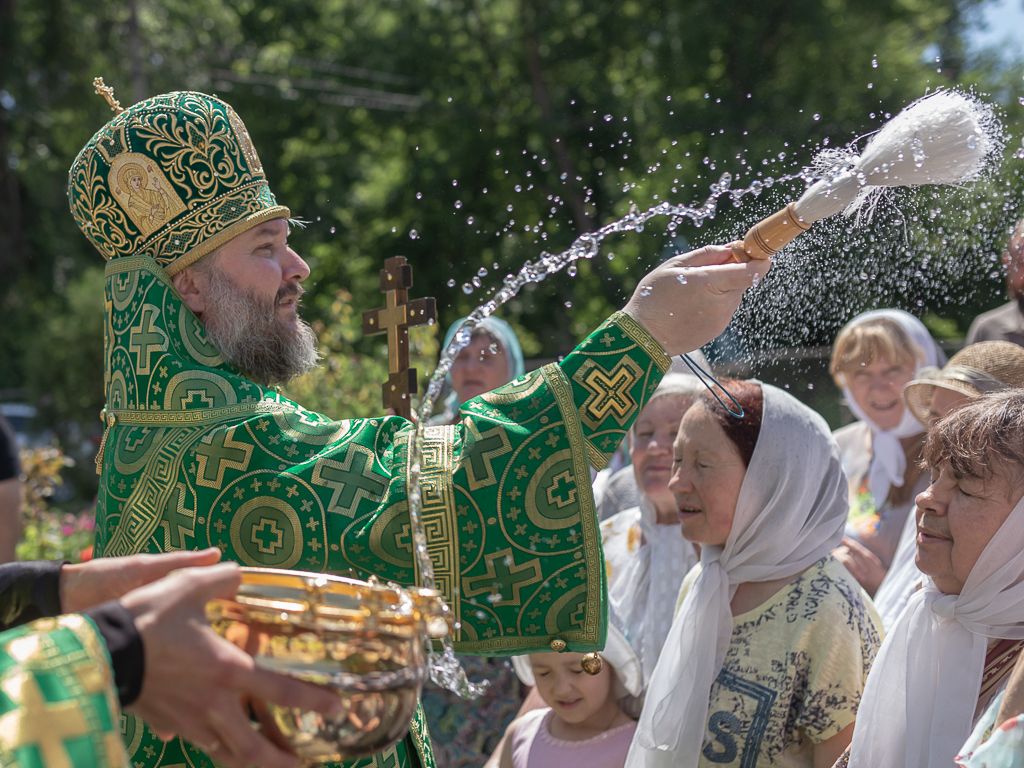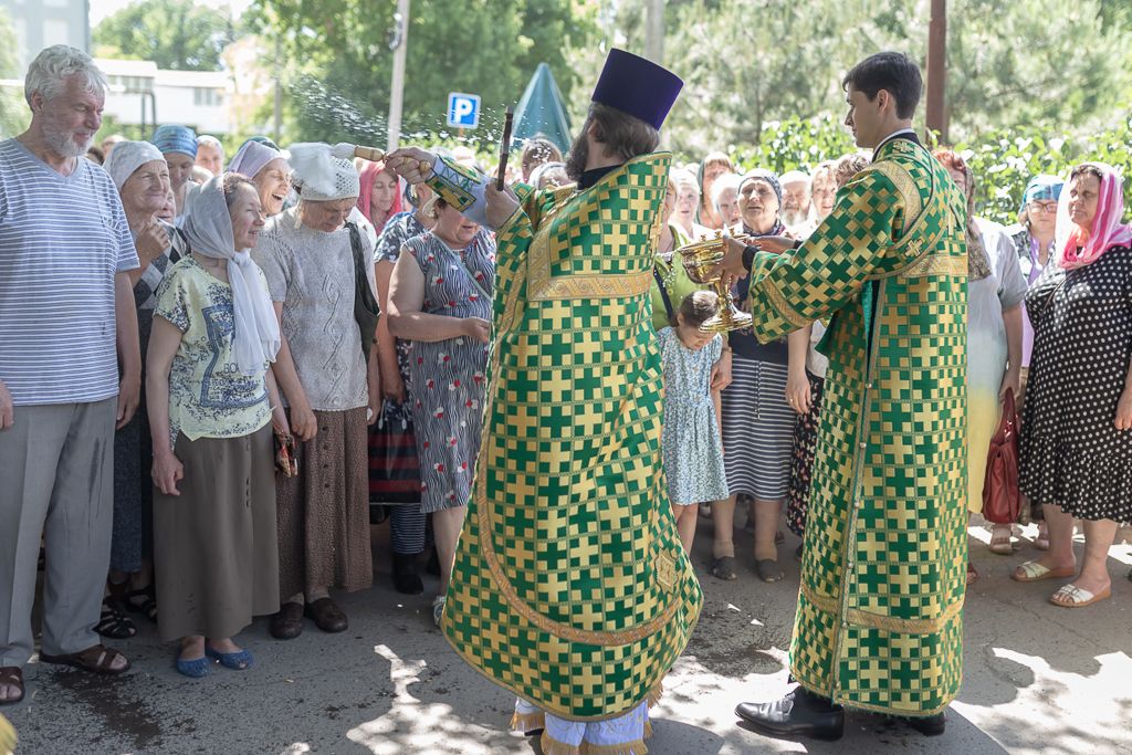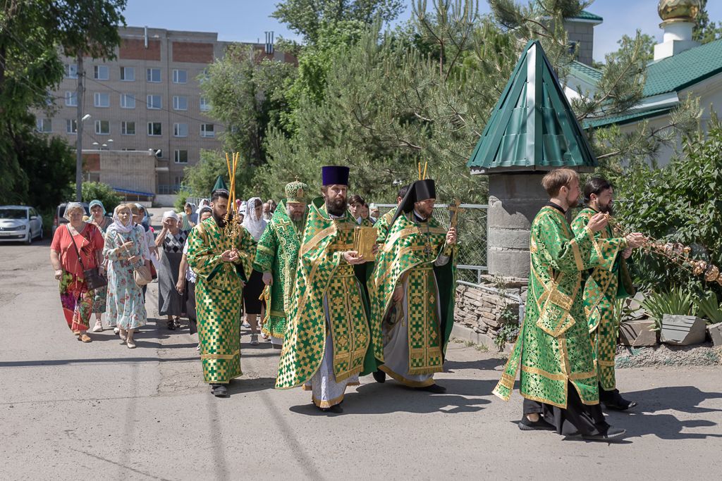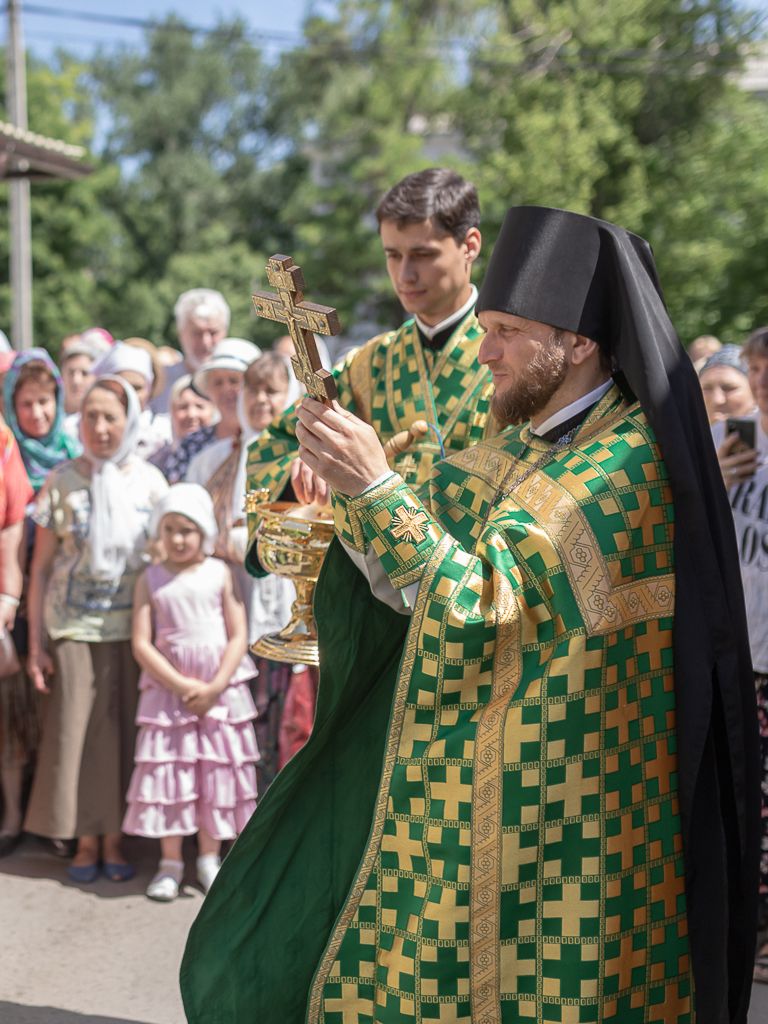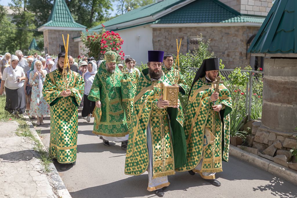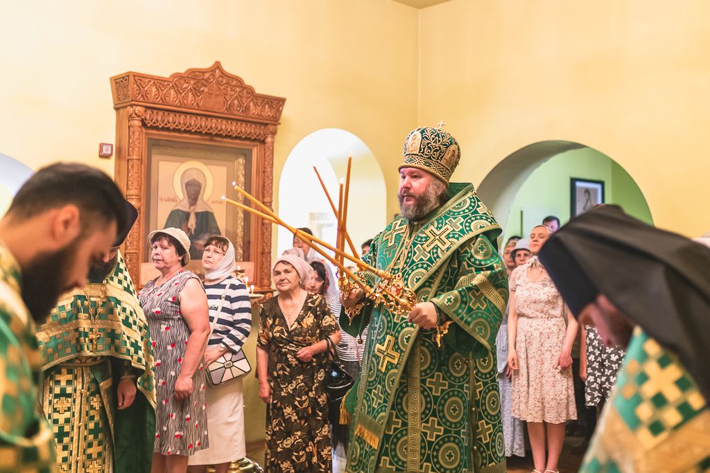 По завершении Литургии духовенство и прихожане во главе с архипастырем совершили крестный ход, прославляя небесную покровительницу храма.