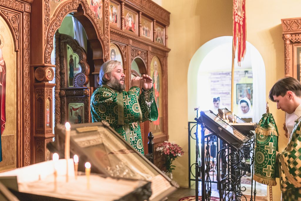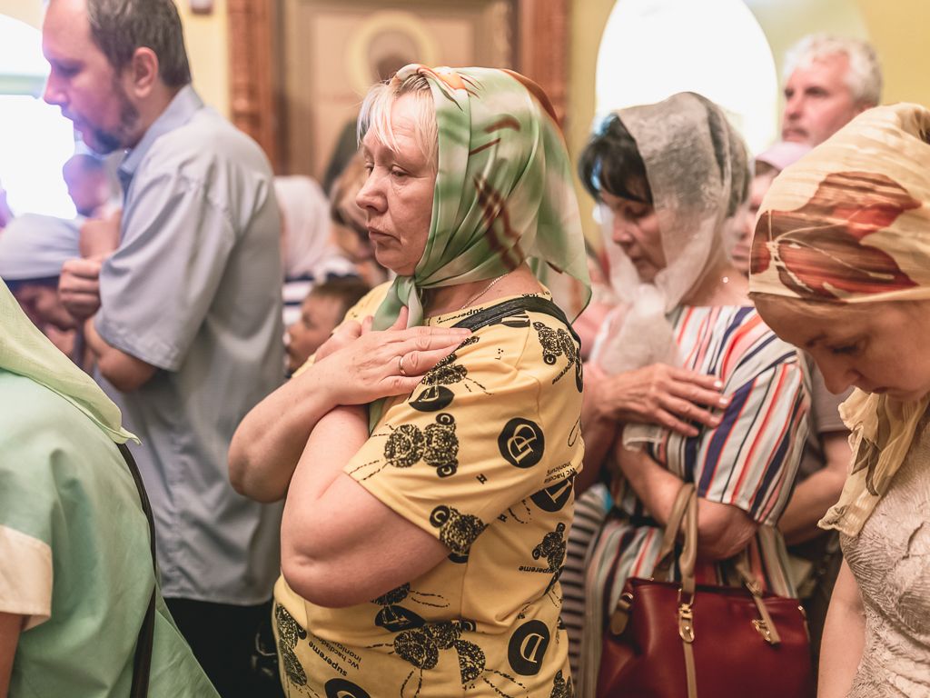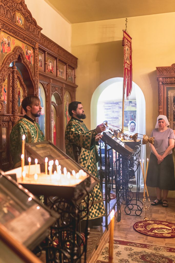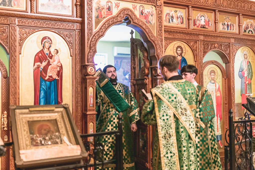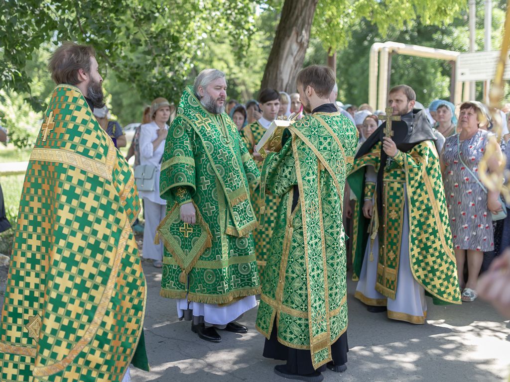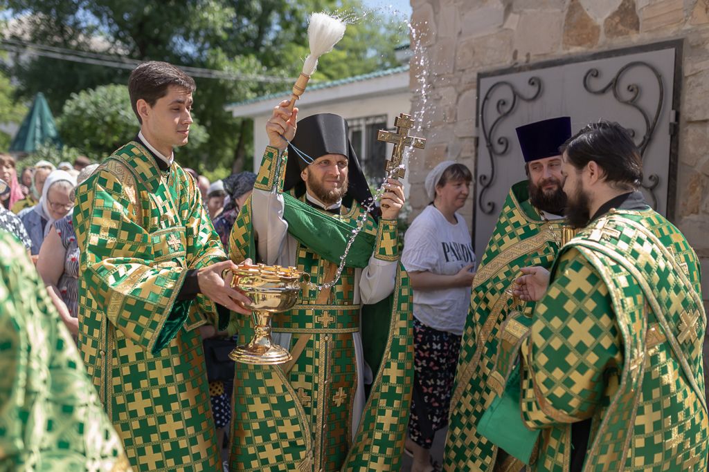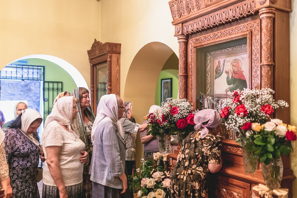 По завершении Литургии духовенство и прихожане во главе с архипастырем совершили крестный ход, прославляя небесную покровительницу храма.
