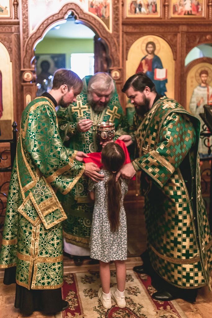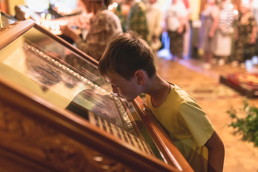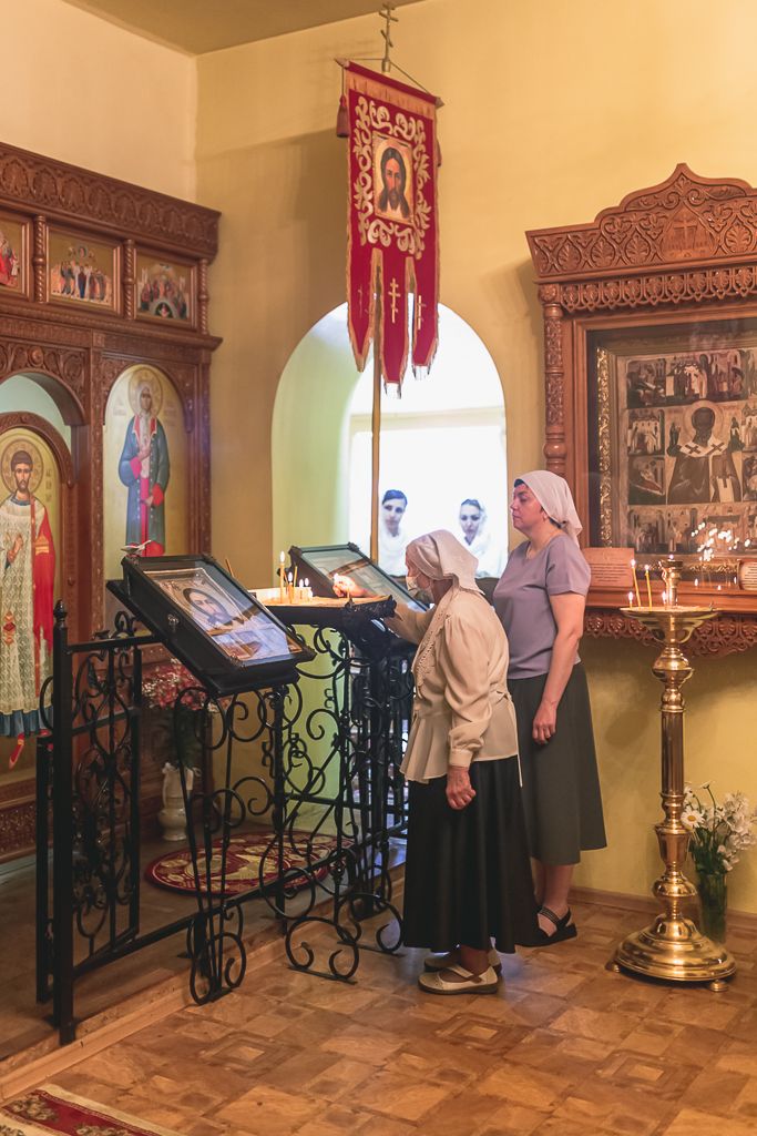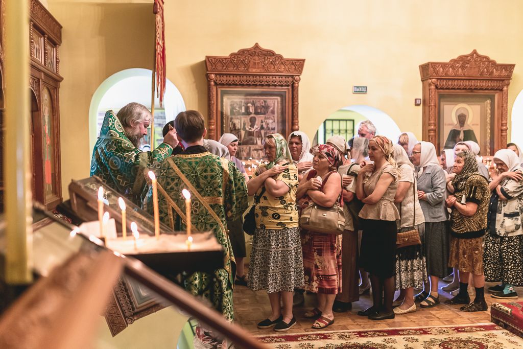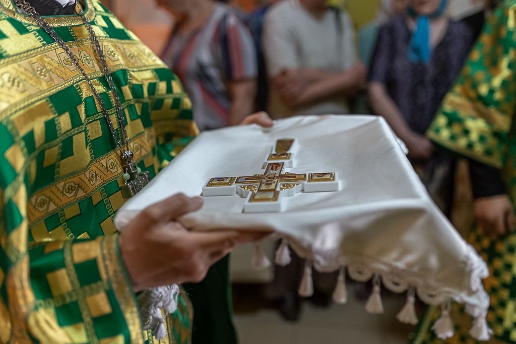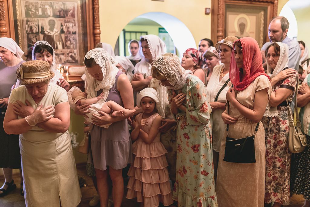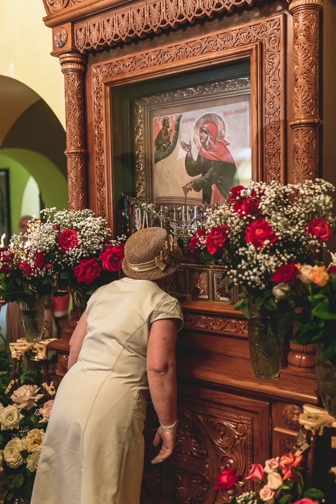 По завершении Литургии духовенство и прихожане во главе с архипастырем совершили крестный ход, прославляя небесную покровительницу храма.