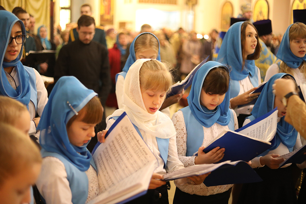 Богослужебные песнопения исполнили Православный солдатский хор инженерных войск «За Веру и Отечество» – художественный руководитель игумен Варнава (Столбиков), хор Покровского кафедрального собора под управлением Светланы Бондарь и детский архиерейский хор под управлением Натальи Тихоновой.