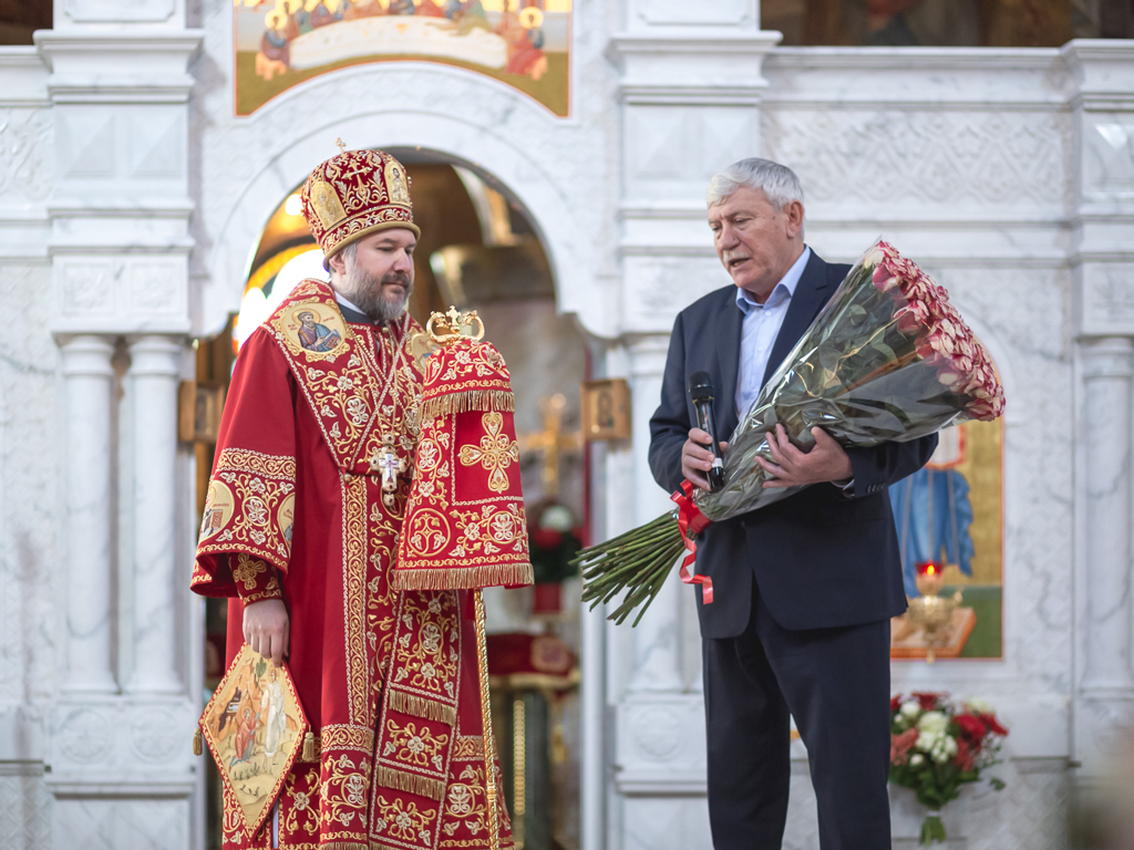 Владыку Симона, духовенство и всех собравшихся на молитву с праздником Светлого Христова Воскресения поздравил заместитель председателя Законодательного Собрания Ростовской области Вячеслав Николаевич Василенко.