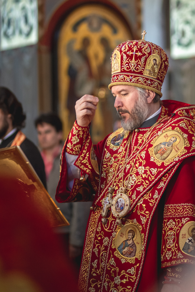 5 мая 2024 года, епископ Шахтинский и Миллеровский Симон совершил великую вечерню в Покровском кафедральном соборе города Шахты.