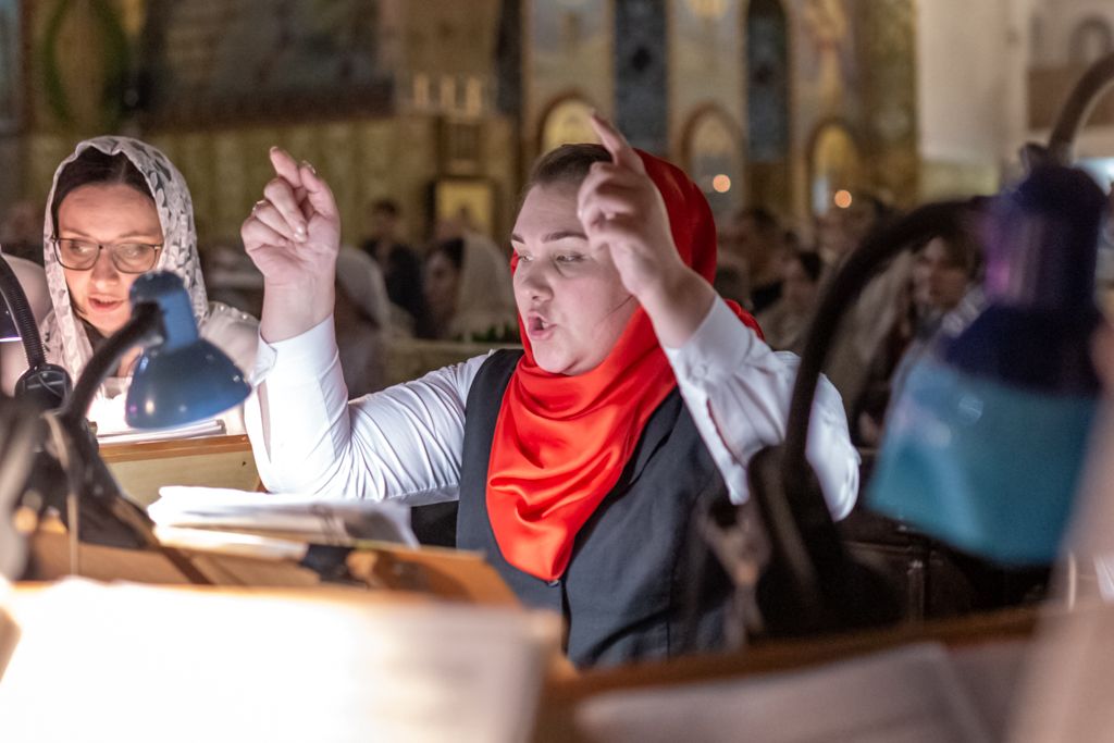 Все богослужение этого праздника проникнуто чувством радости о Воскресшем Христе, дающем каждому возможность в вечности быть с Ним. Перед самой полуночью торжественный колокольный благовест возвещает о наступлении праздника воскресения. Священнослужители с крестом, светильниками и каждением исходят из алтаря и обходят вокруг собора. Шествие останавливается у затворенных западных врат, и здесь впервые архиерей возглашает главную молитву праздника: «Христос воскресе из мертвых, смертию смерть поправ, и сущим во гробех живот даровав».