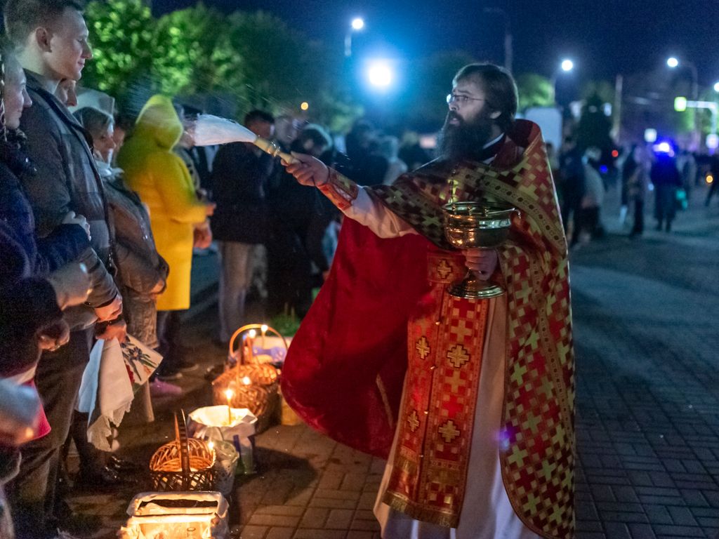 Тысячи верующих в эту ночь посетили храм, разделили радость праздника и освятили пасхальные приношения.