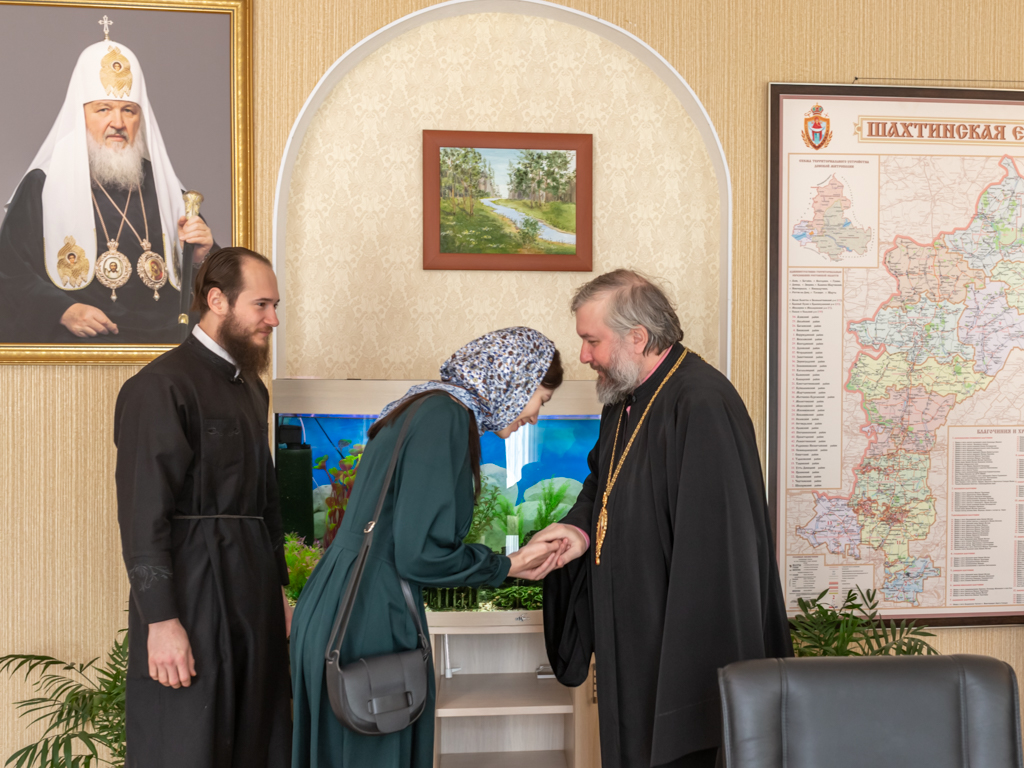 По благочестивой традиции молодые пары, желающие вступить в брачный союз, берут на это благословение. Для студентов, учащихся или закончивших духовные школы, такая практика является обязательной – молодой человек является вместе со своей избранницей к архиерею на беседу и благословение. Так в Епархиальном управлении епископ Шахтинский и Миллеровский Симон провел встречу со студентом аспирантуры Санкт-Петербургской духовной академии, преподавателем Донской духовной семинарии Олегом Бреховым и его избранницей Александрой.