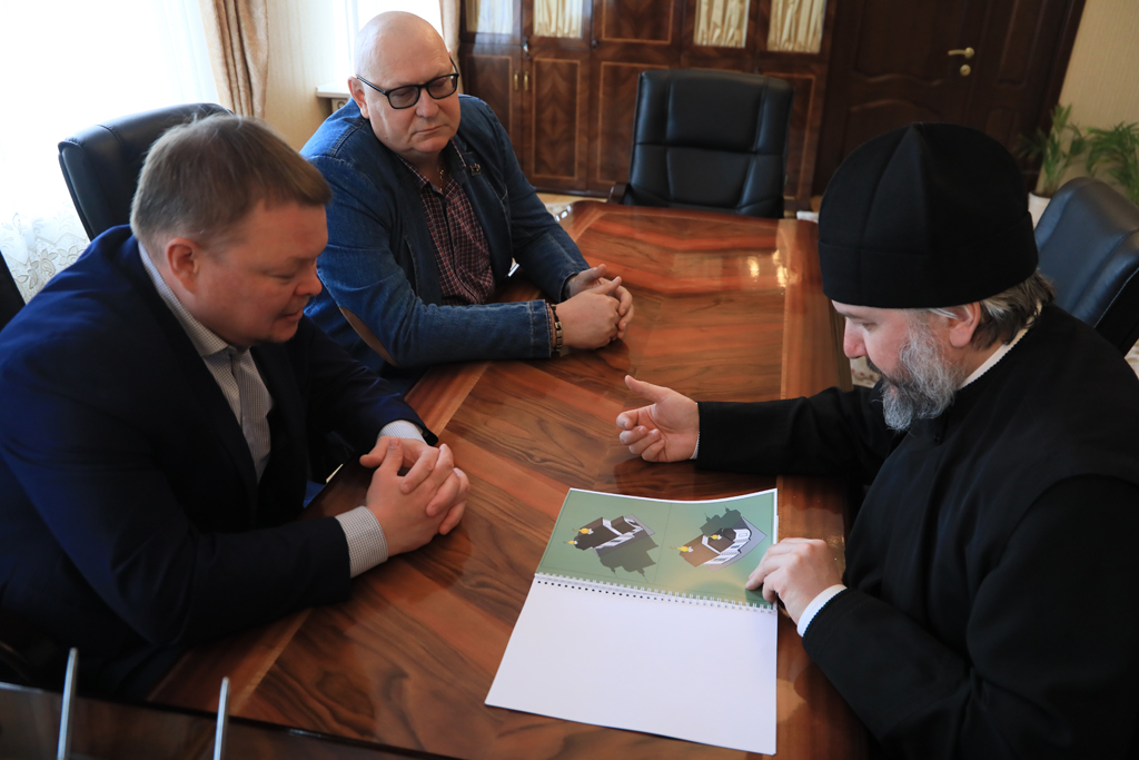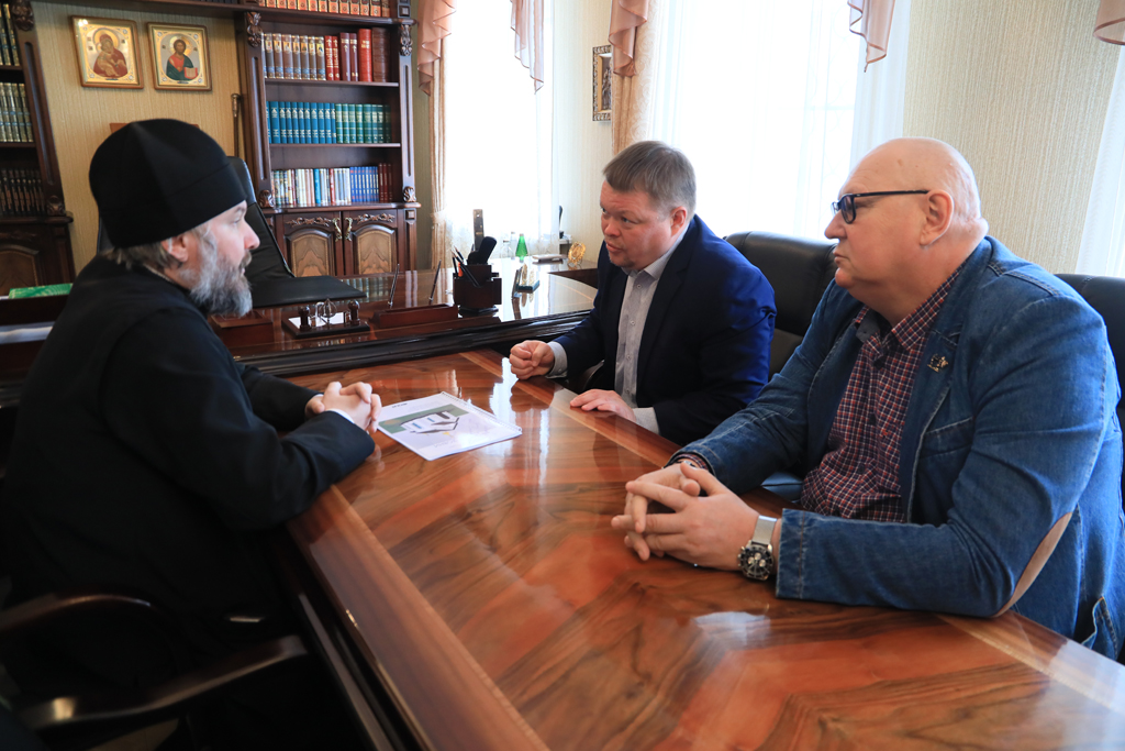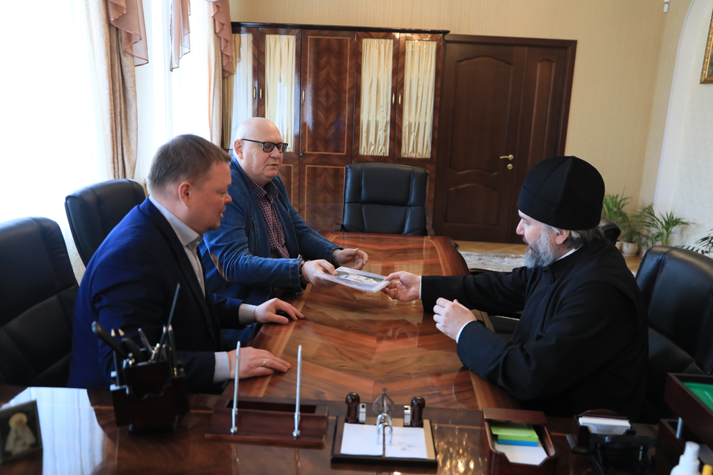 Преосвященнейший епископ Симон и глава Администрации города Донецка Р.В. Кураев провели рабочую встречу в Епархиальном управлении города Шахты