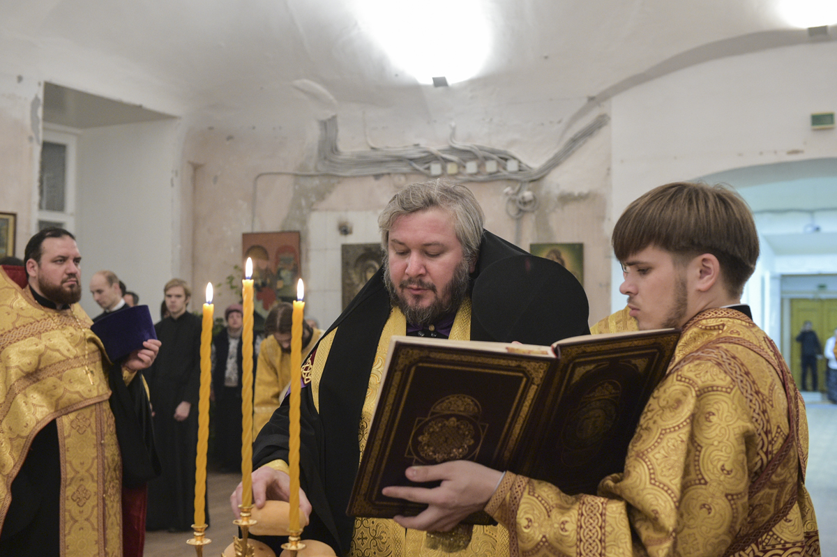 Накануне актового дня Вологодской духовной семинарии владыка ректор в алтаре благословил студентов первого курса бакалавриата на ношение подрясников.