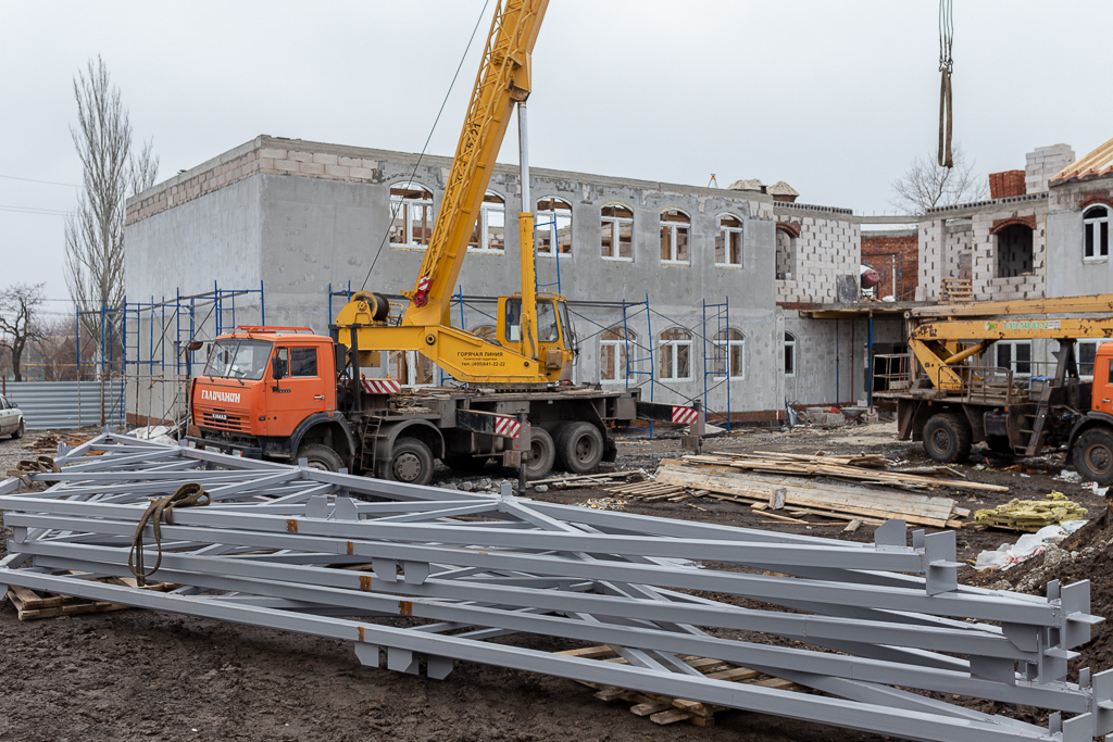 На подворье Покровского кафедрального собора города Шахты ведется строительство духовно-просветительского центра. С ходом работ ознакомился епископ Шахтинский и Миллеровский Симон.