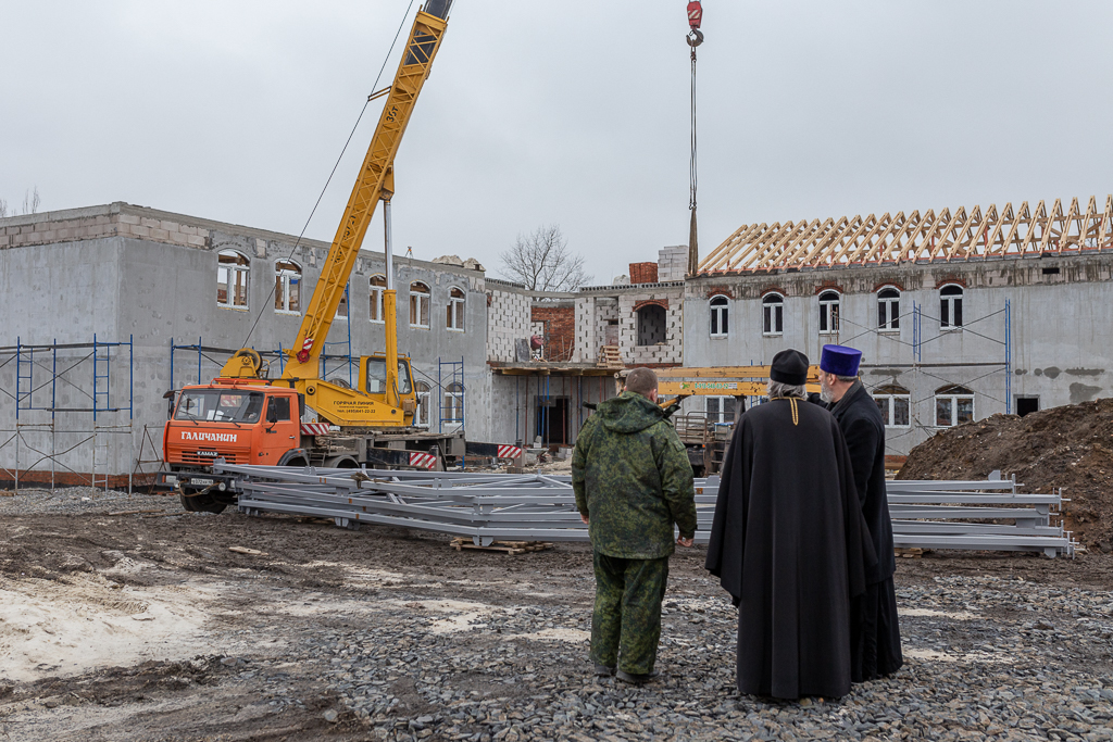 Архипастыря сопровождал руководитель АНО по предоставлению услуг в области создания, восстановления и обеспечения деятельности духовно-просветительских центров «Вера, Надежда, Любовь» иерей Владислав Касьянов, священник ознакомил епископа Симона выполненными этапами работы. Также доложил о ходе работ представитель фирмы застройщика.