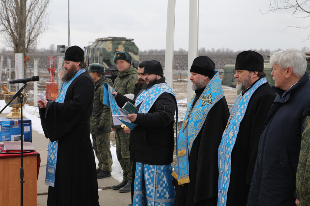 После построения личного состава и приветствия командира части полковника А.В. Богдановича, Преосвященнейший епископ Симон совершил молебен.