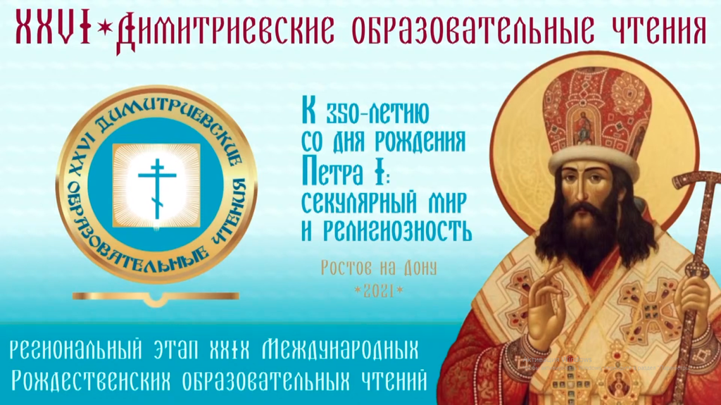 В Донской митрополии состоялся ежегодный церковно-общественный форум в сфере образования, культуры, социального служения и духовно-нравственного просвещения – XXVI Димитриевские образовательные чтения. В 2021 году тема Чтений соответствовала общей тематике XXX Международных Рождественских образовательных чтений – «К 350-летию со дня рождения Петра I: секулярный мир и религиозность». В рамках форума в Шахтинской епархии прошли секции «Петр Великий и начало сохранения и изучения историко-культурного наследия Отечества», «Работа воскресных школ в условиях пандемии коронавирусной инфекции».