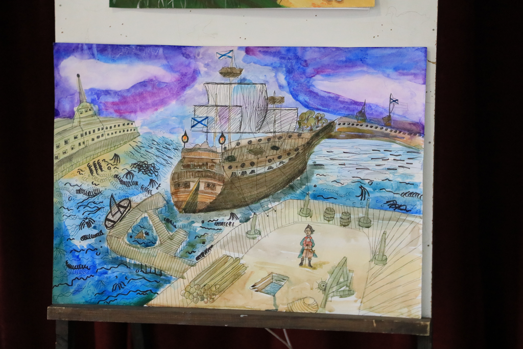 Дипломант 1 степени – Невгод Алена, 13 лет, «Петр 1 на строительстве корабля», бумага, гуашь, Учебно-воспитательная группа «Азы православия», Донецкое Успенское архиерейское подворье;