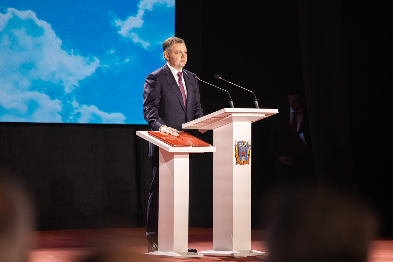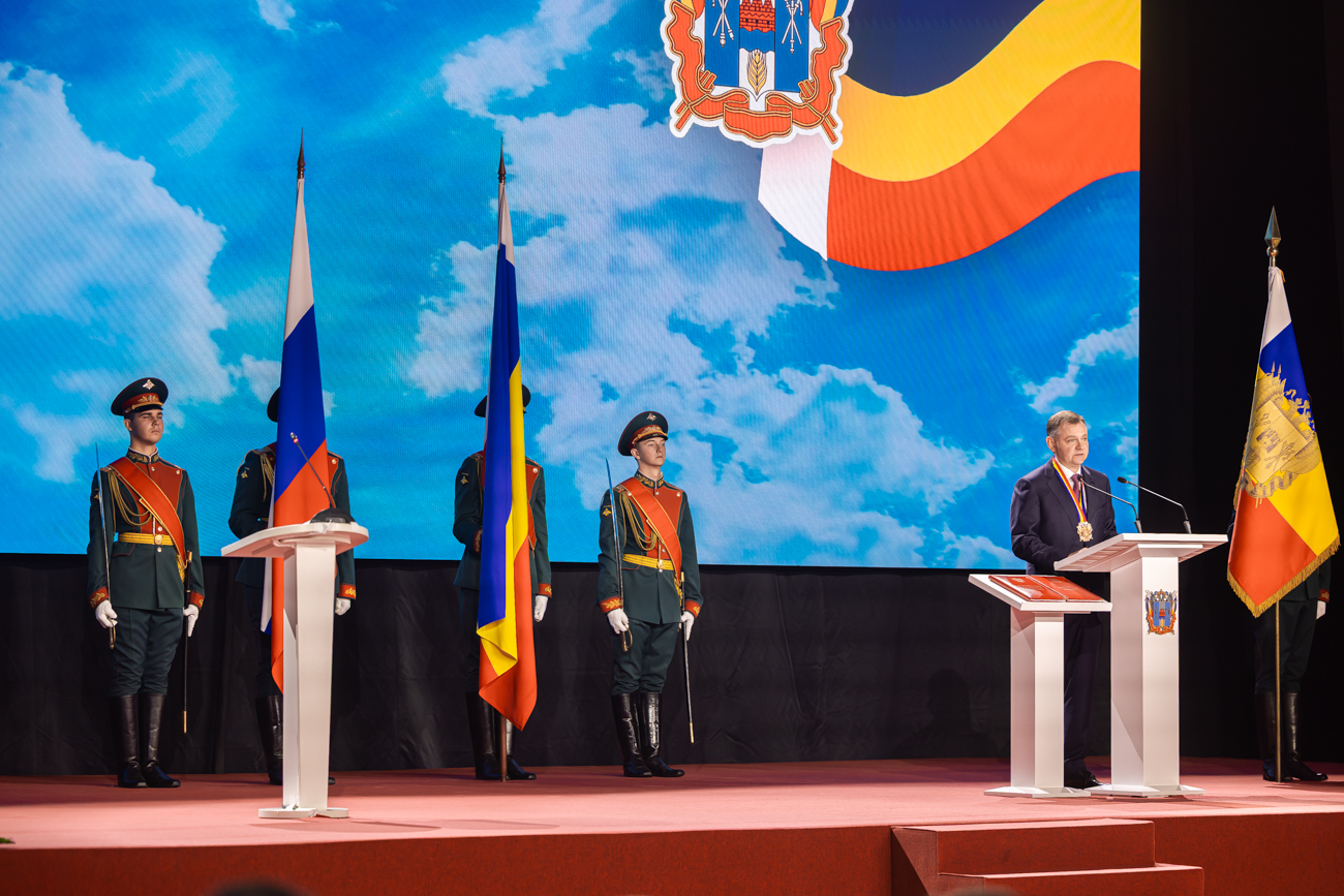 Затем, в соответствии со статьей 53 Устава Ростовской области, избранный Губернатор принес присягу.