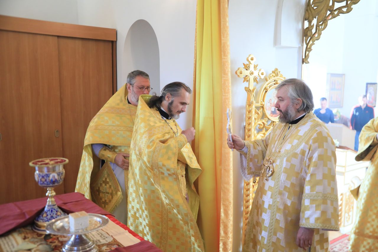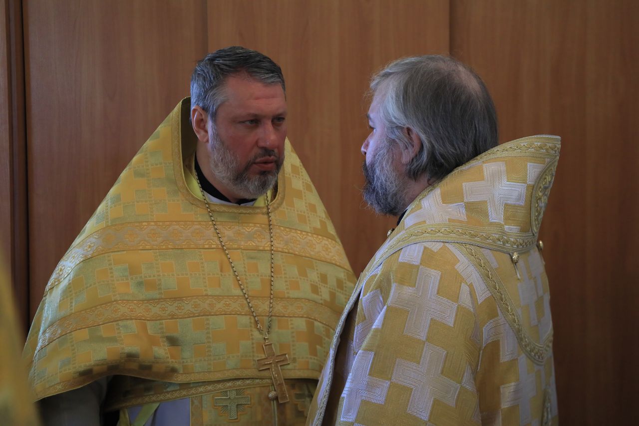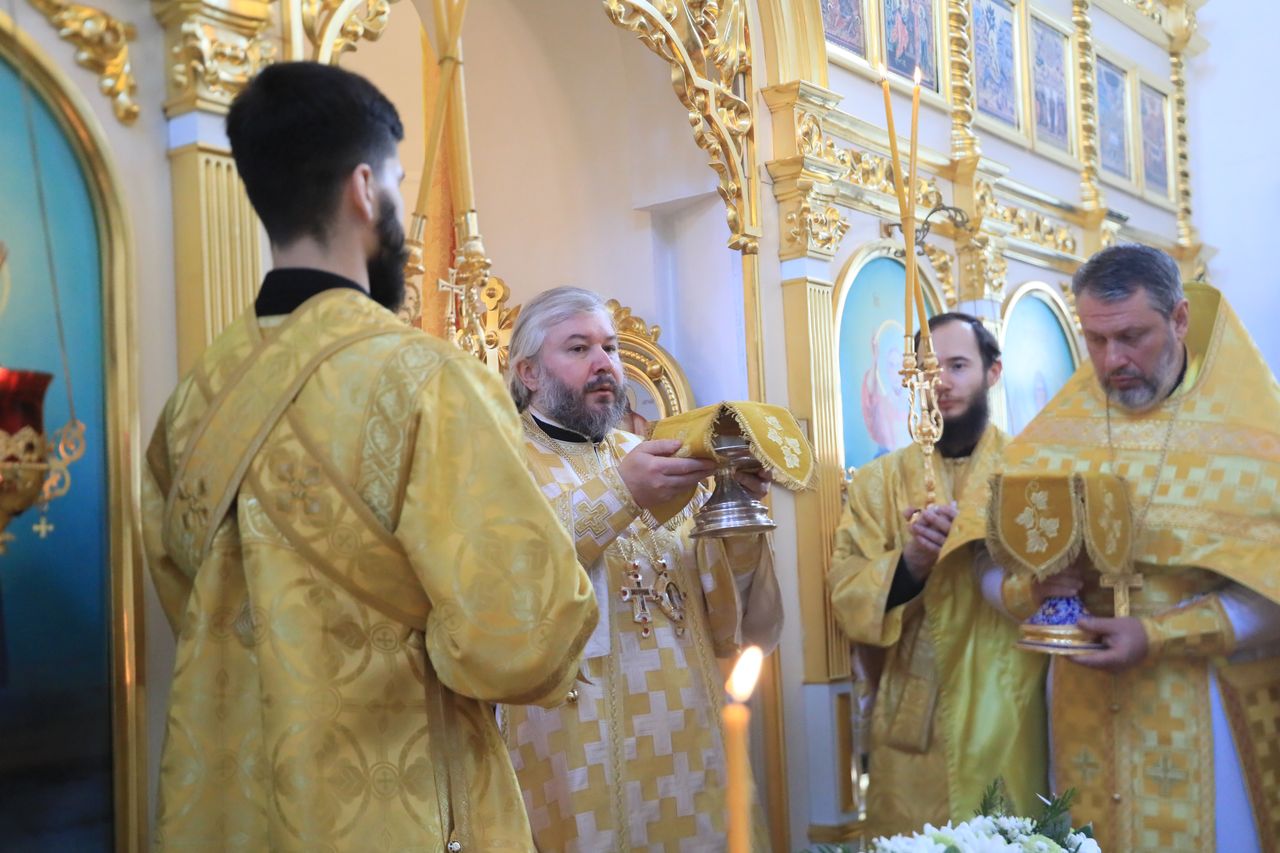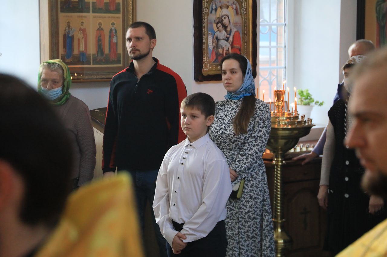 Его Преосвященству сослужили благочинный приходов Каменск-Шахтинского округа иерей Владислав Касьянов, настоятель Свято-Троицкого храма иерей Евгений Осяк, клирик храма иеромонах Серафим (Сенченко), клирик храма Покрова Пресвятой Богородицы г. Каменск-Шахтинский иерей Вадим Ефимов и диакон Трофим Осяк.